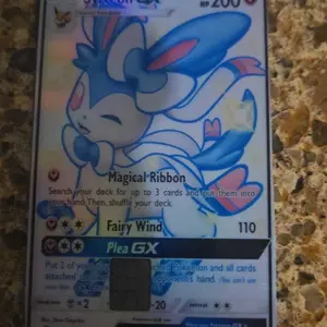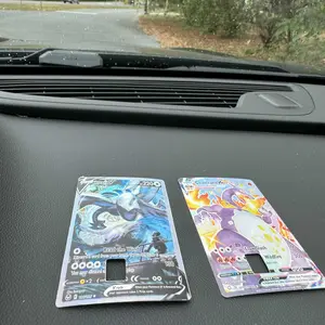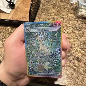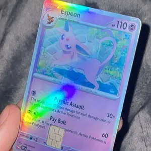 I love this so much!! I got the custom one and choose this espeon card and it’s so cute!! Also don’t worry too much if you don’t get it perfect on the first try I didn’t and had to peel it off and try again a couple times but it still stuck perfectly!! Also look at the holo like hello it’s so cute!!