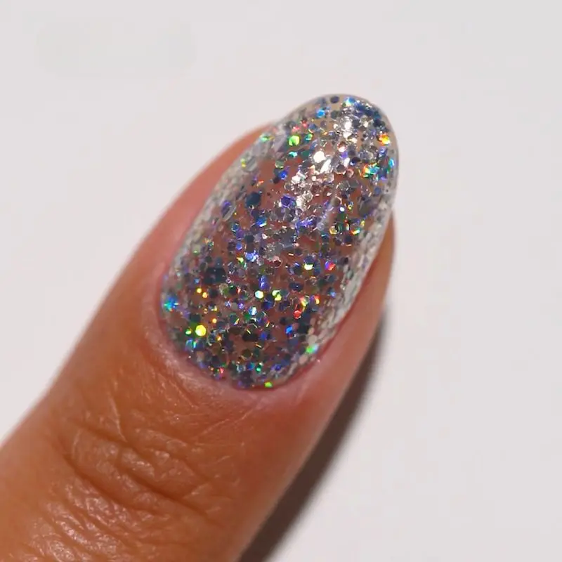 Oz of Holo #023 (glittery silver) — Don’t look too far behind the curtain. This holographic glitter with holographic sparkles is the answer to all of your questions