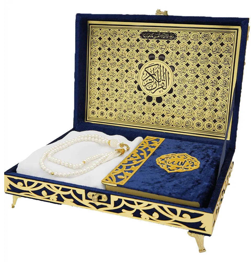 Holy Quran Keepsake Ikra Gift Set for Women - With Hijab & Tesbih - Navy Blue