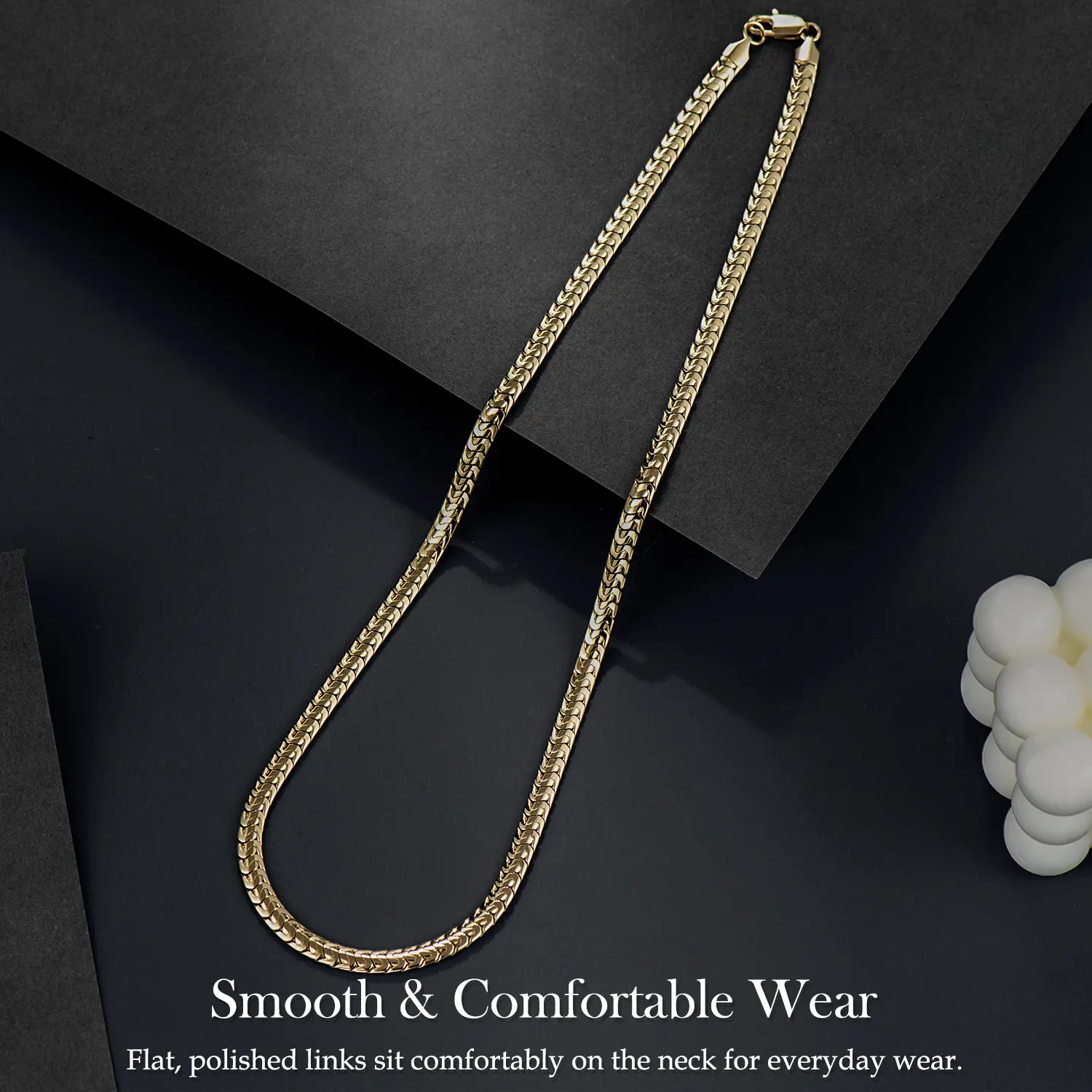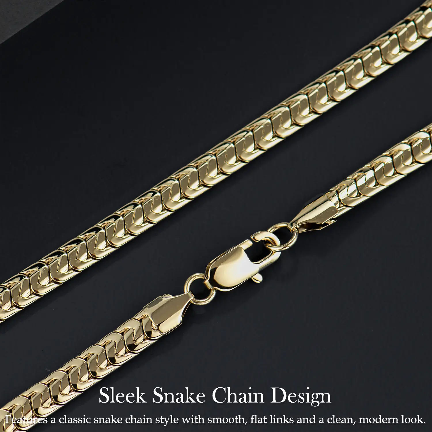 5. Holylegend 14K Real Gold Plated Snake Chain Necklace for Men, Flat Chain Design, Smooth Finish, Classic Minimal Style, Gift Ready