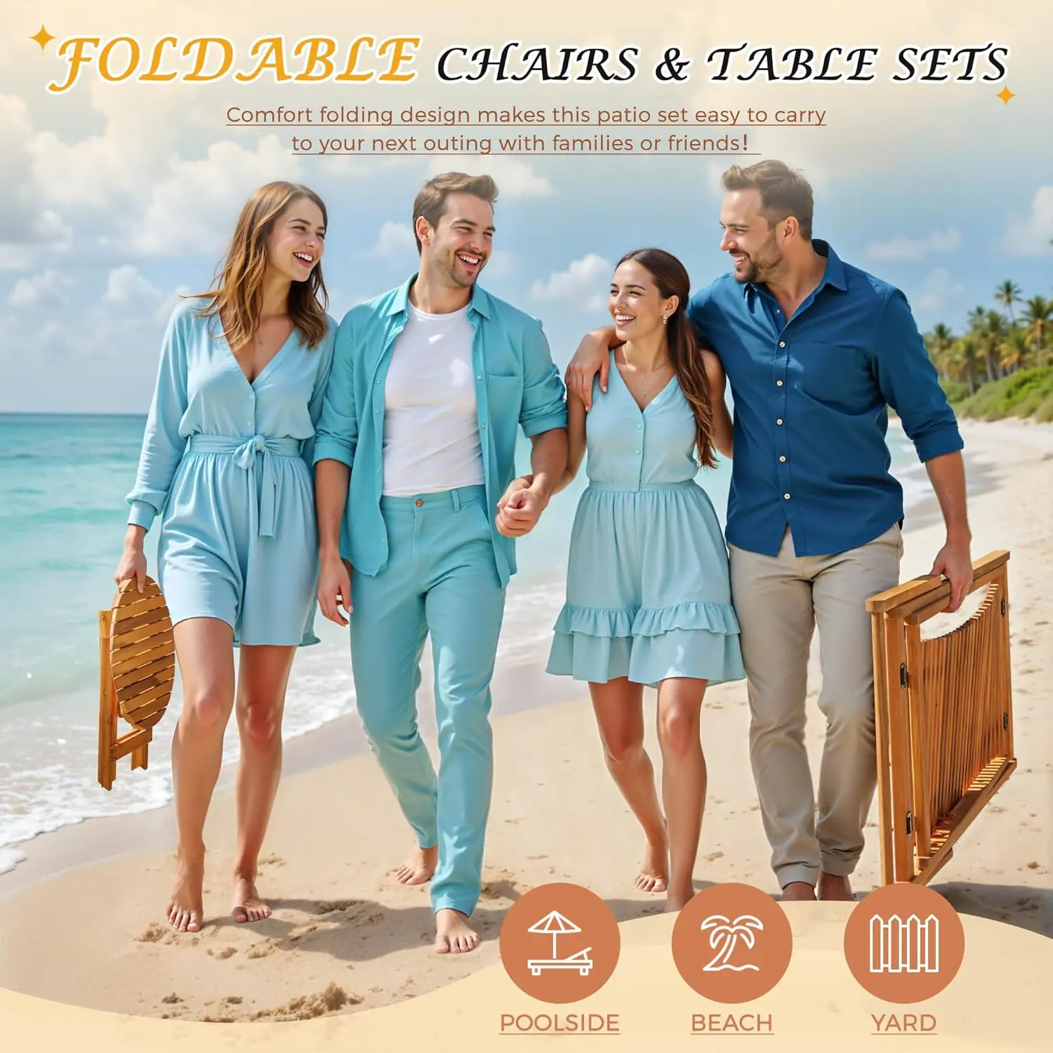 ·Foldable & Portable: The chairs and table can be easily folded for compact storage or transport, making them ideal for trips or seasonal use.