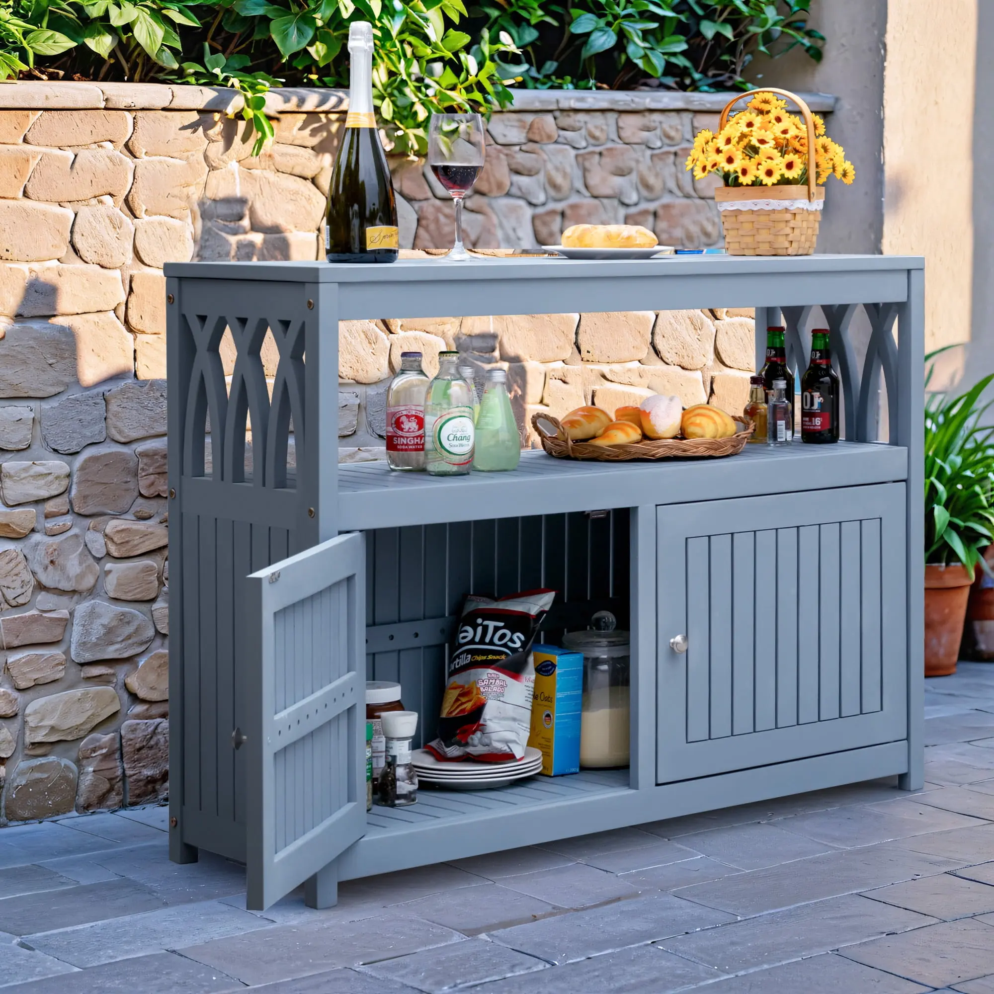 MULTIPURPOSE SCENE: HOMALL multi-functional storage buffet cabinet sideboard can be placed in the patio, balcony, lawn, kitchen, dining room, living room, both indoor and outdoor to meet your needs as much as possible.