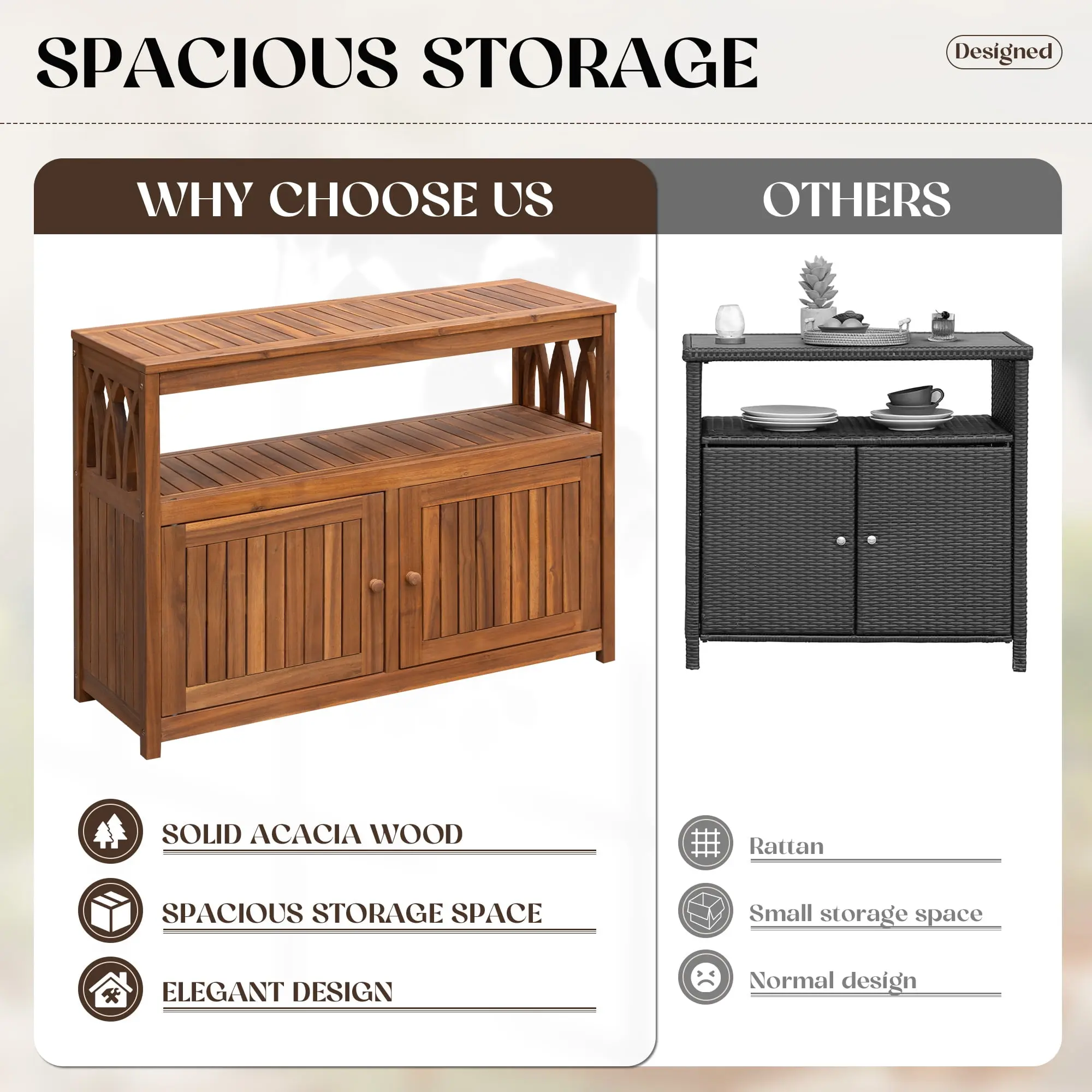EASY TO CLEAN: HOMALL acacia wood storage cabinets are not easy to grow insects and mold, non-sealed design with a water hose can be, unique design for you to save your heart and energy.
