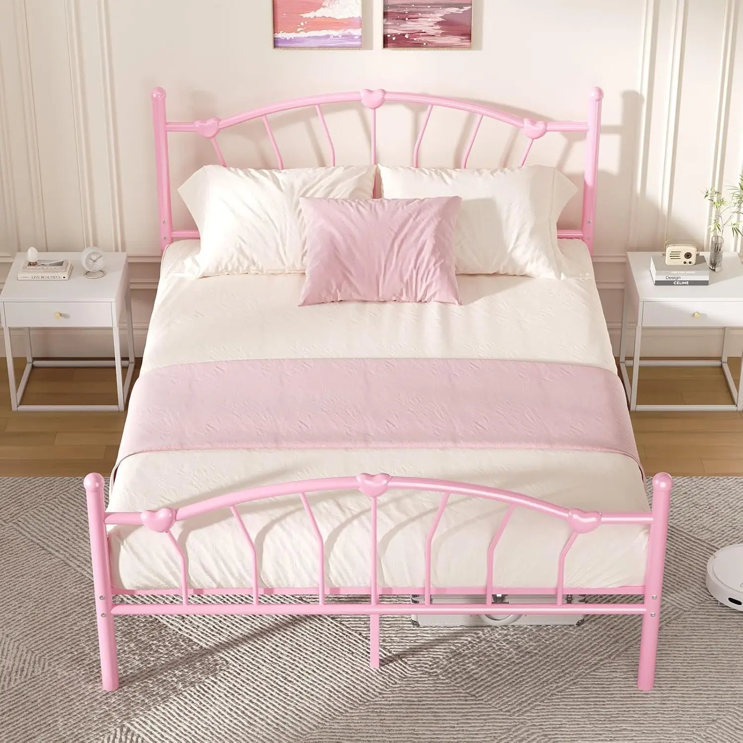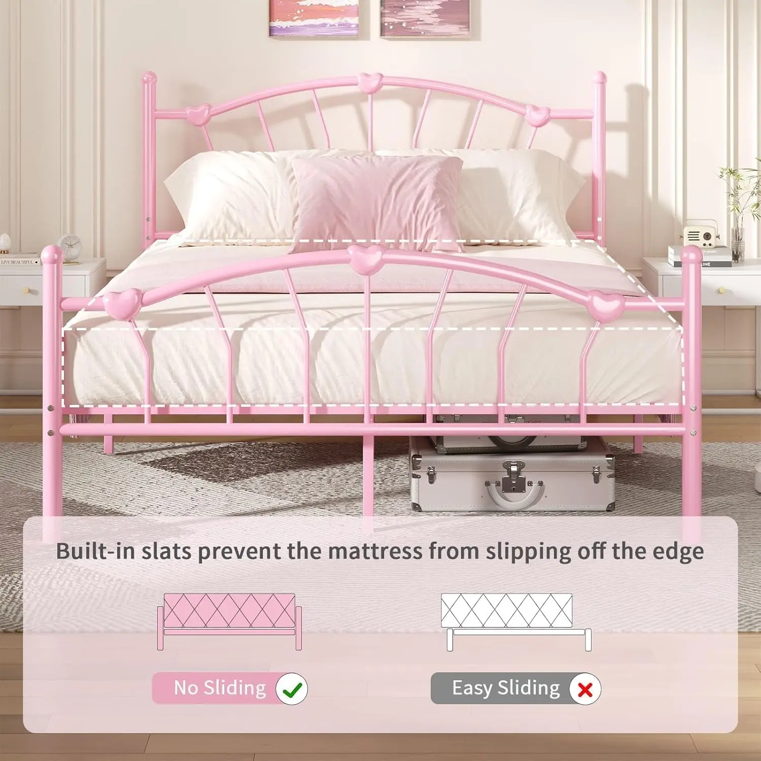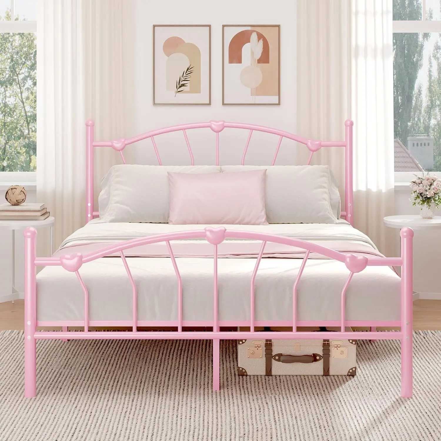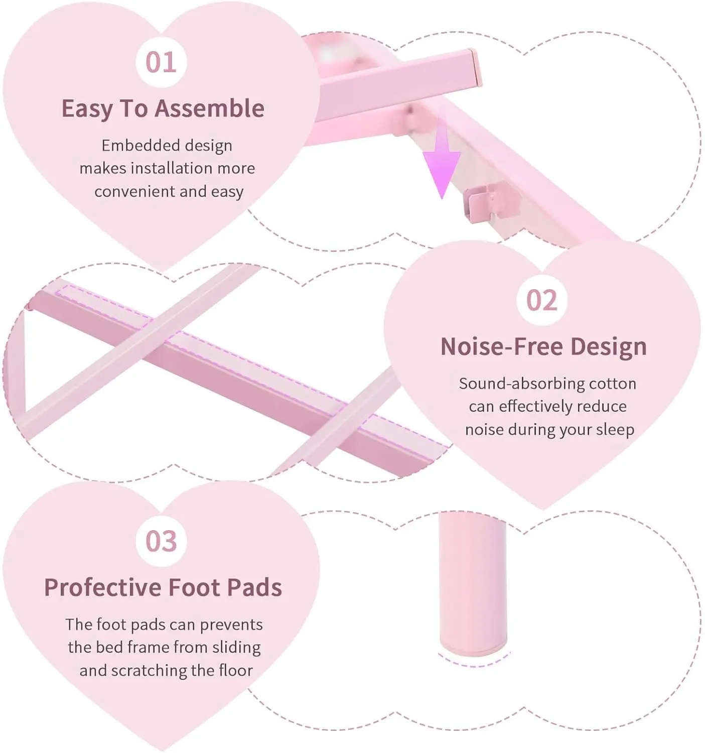 ·Warm and Lovely Design: The bed frame features a heart-shaped decorative headboard and footboard, clean lines, warm and cozy, creating a lovely and romantic atmosphere for every princess's bedroom