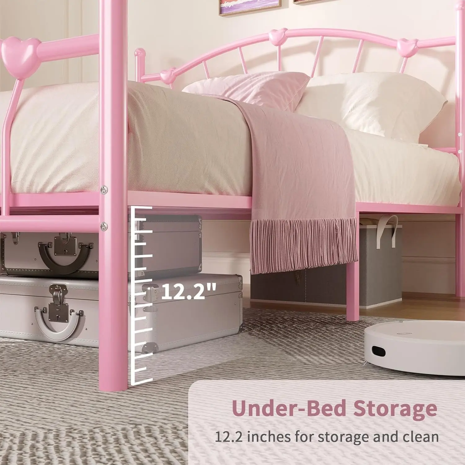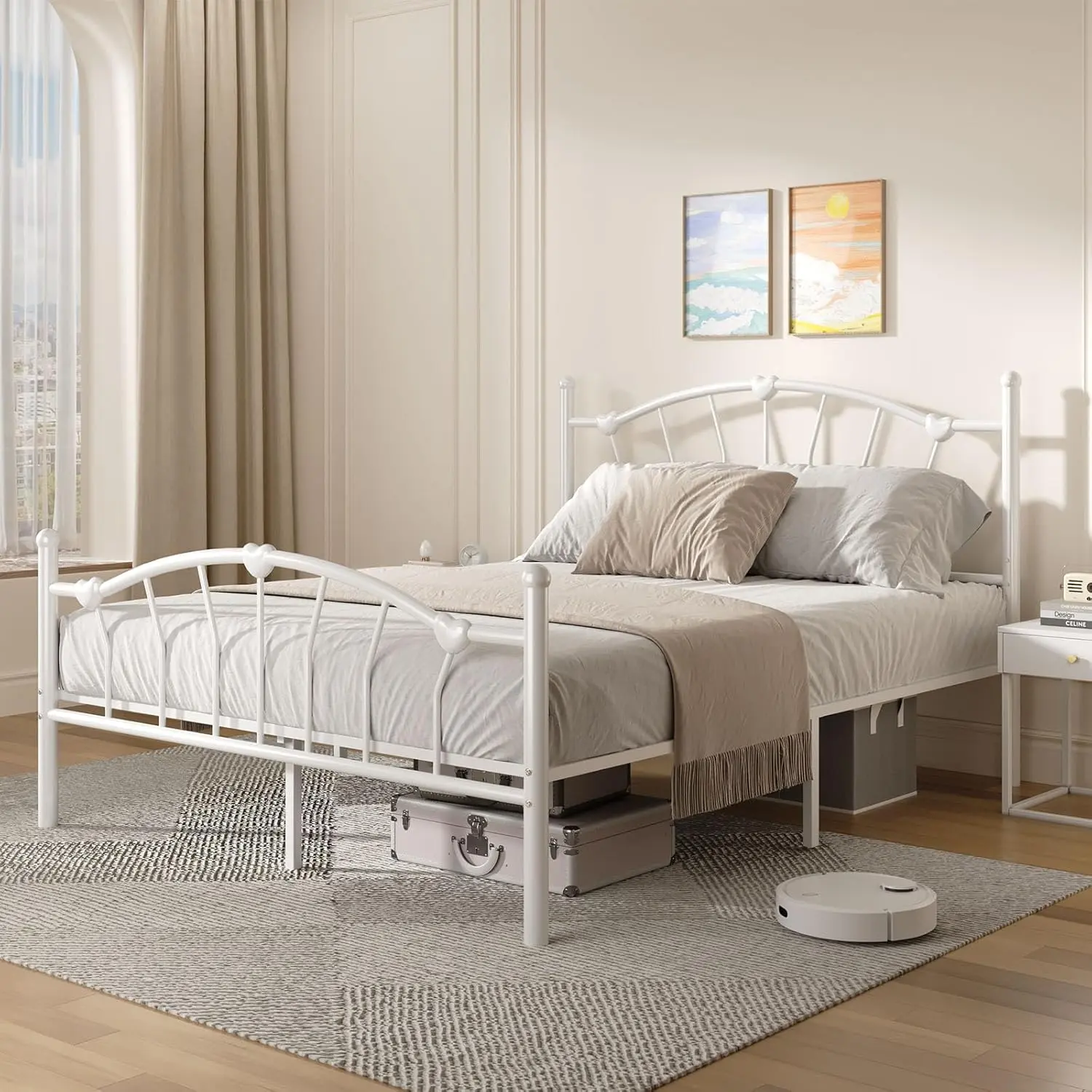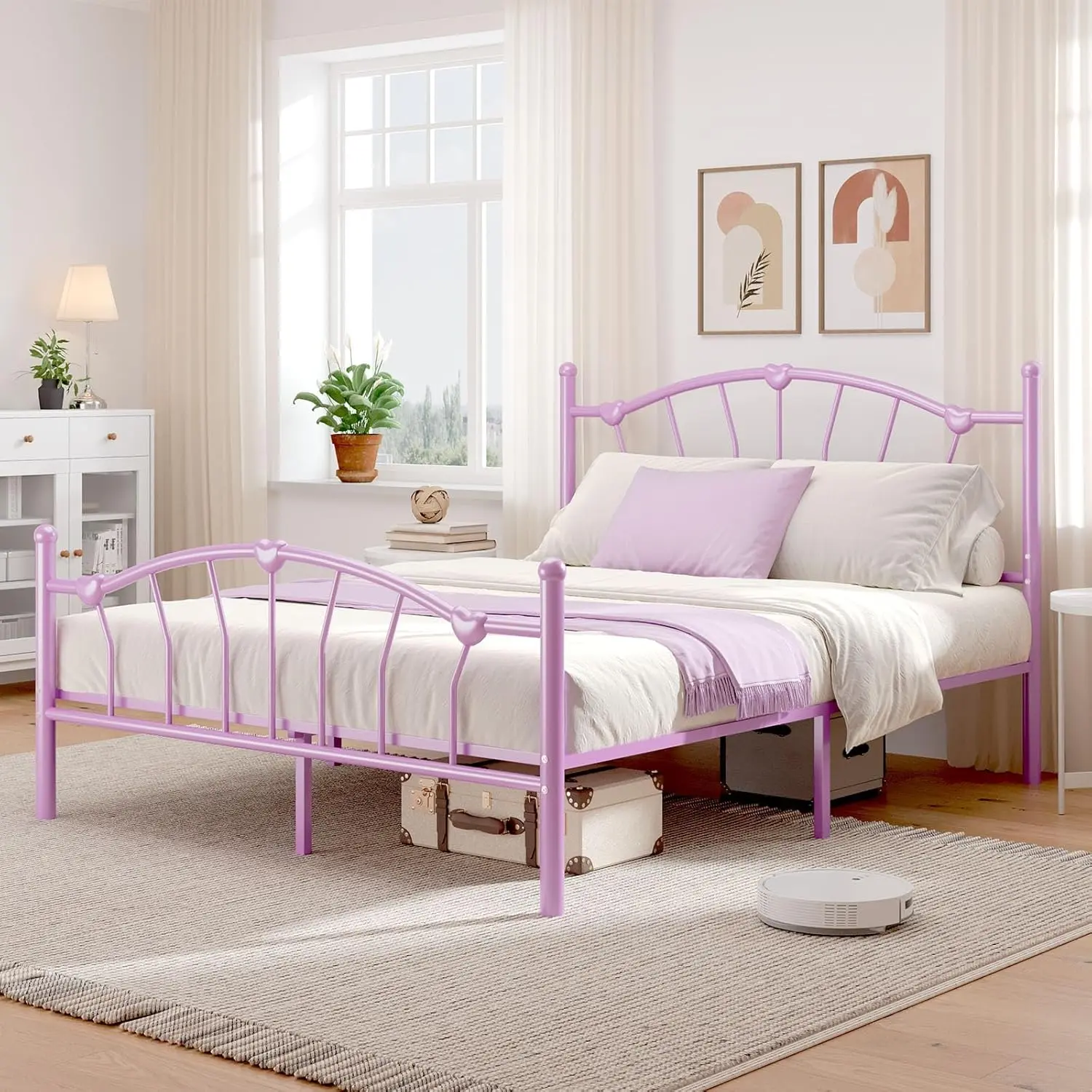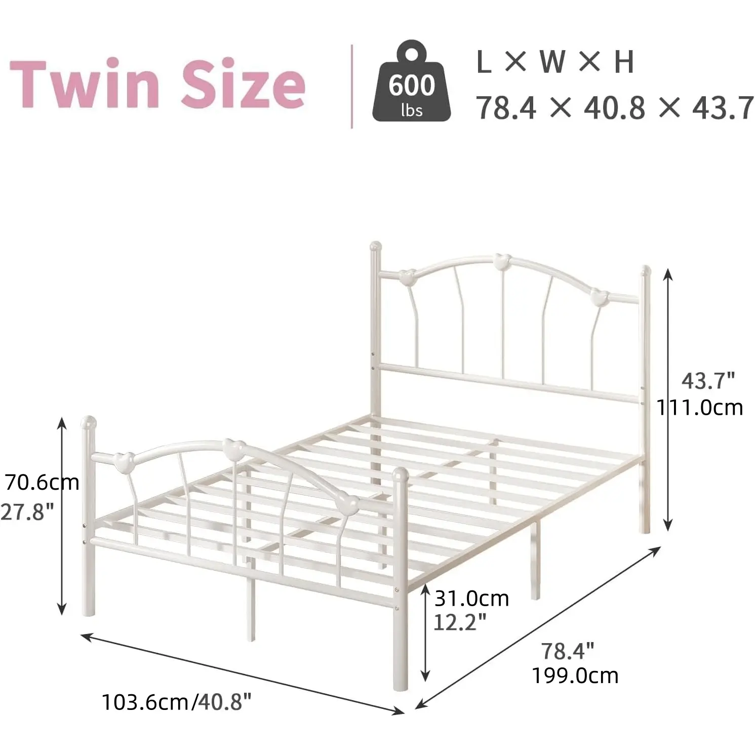 ·Warm and Lovely Design: The bed frame features a heart-shaped decorative headboard and footboard, clean lines, warm and cozy, creating a lovely and romantic atmosphere for every princess's bedroom