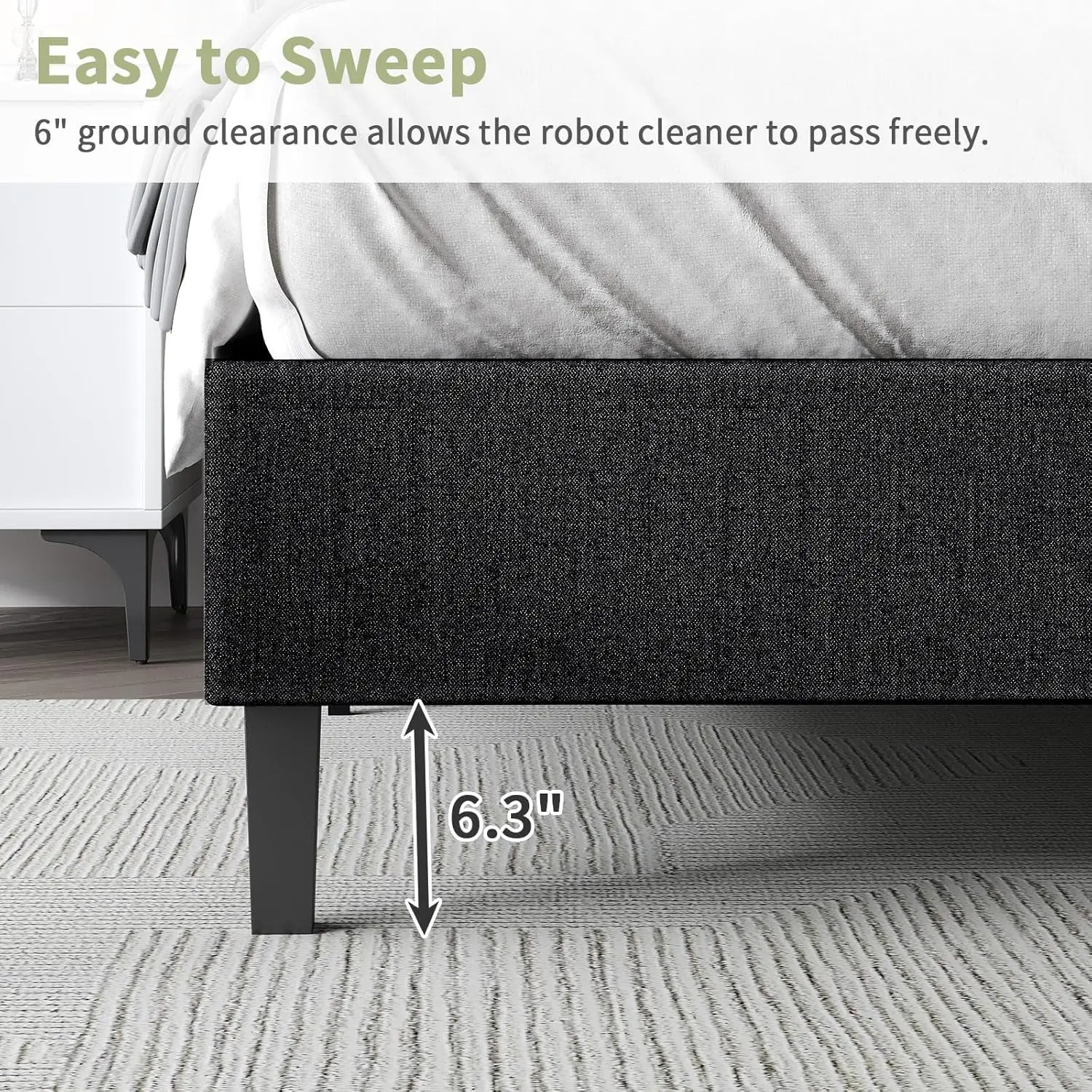 ·Adjustable Headboard: Bed frame with adjustable headboard Easily set the height to match your needs—ideal for reading in bed or finding your most comfortable sleeping position