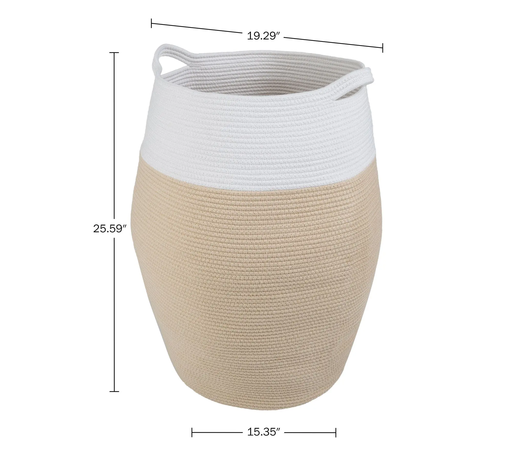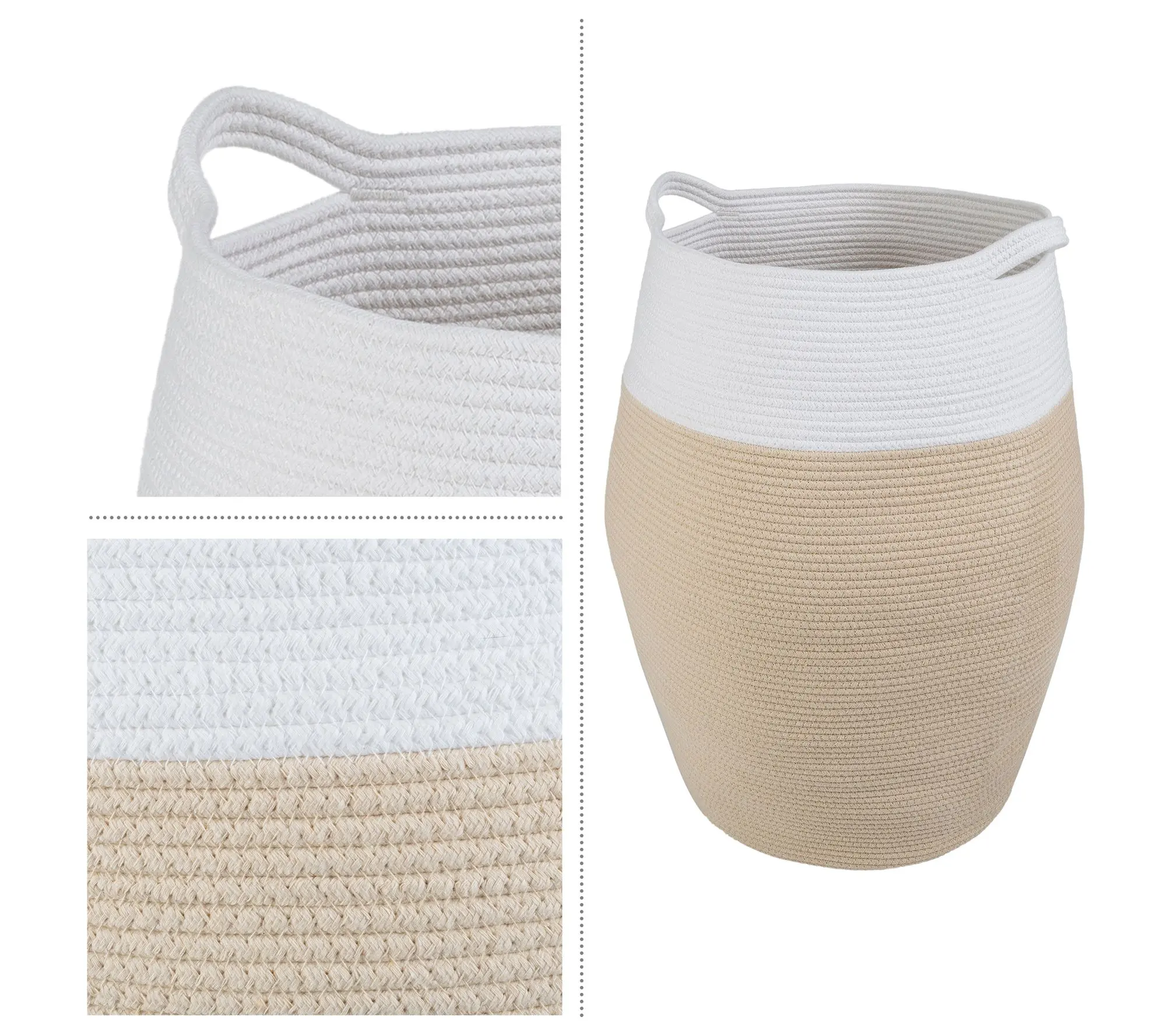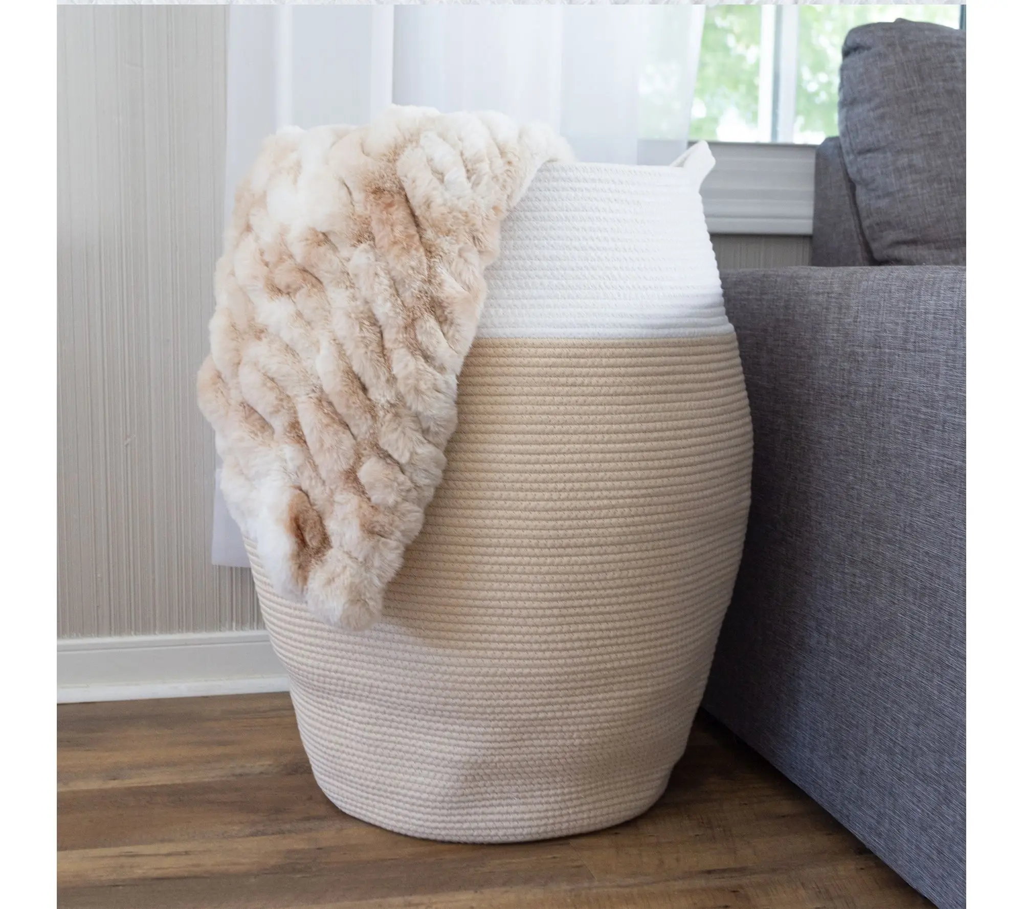 ·Curved cotton rope basket offers versatile storage for blankets, toys, or essentials