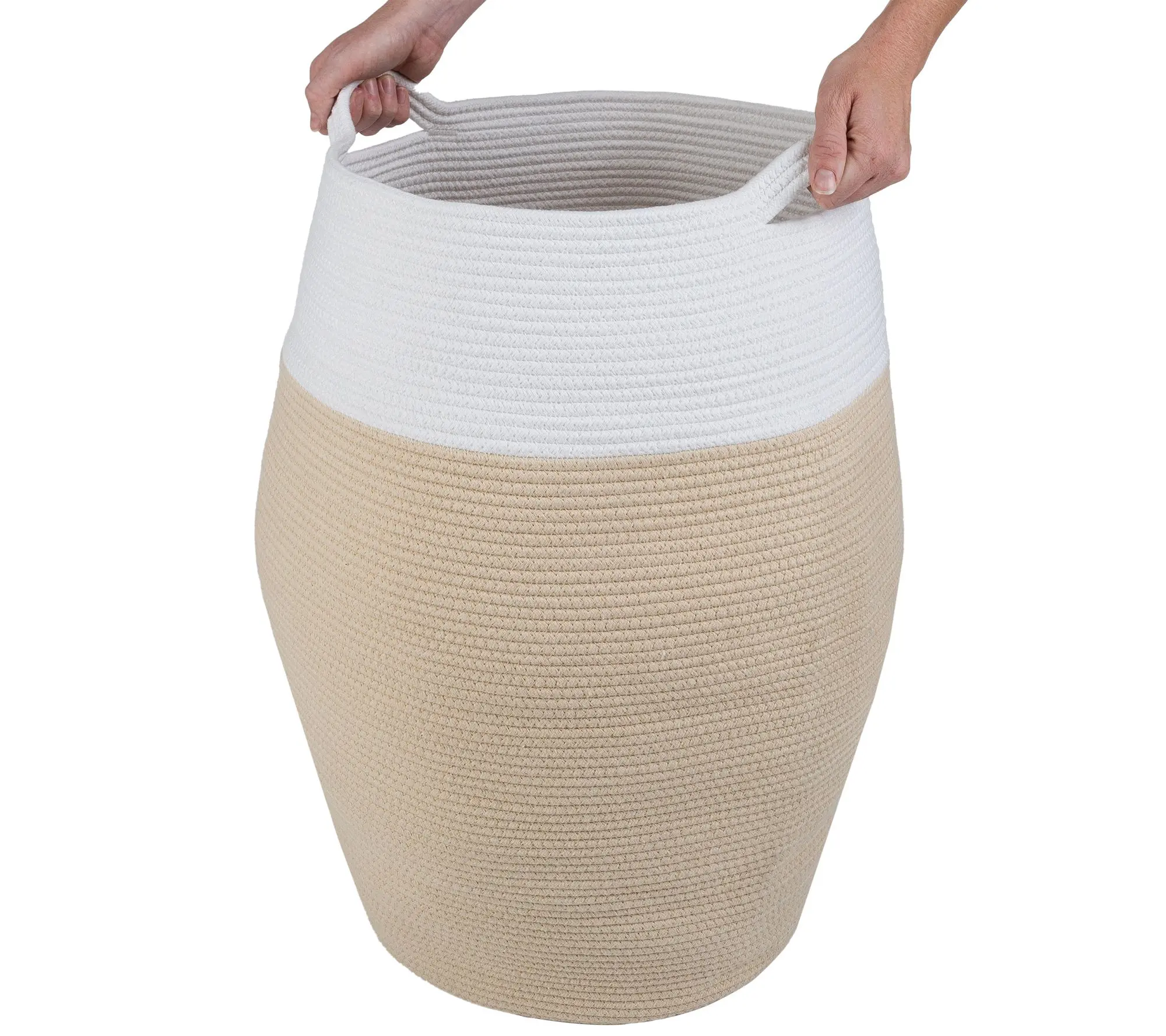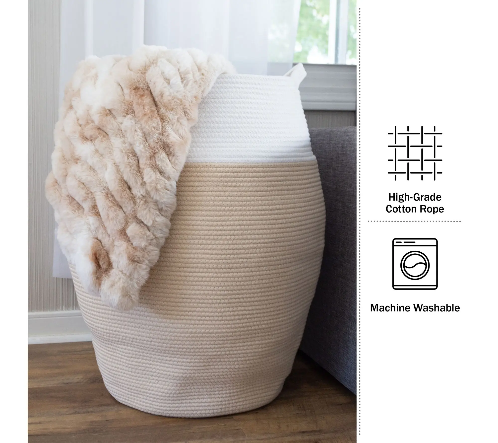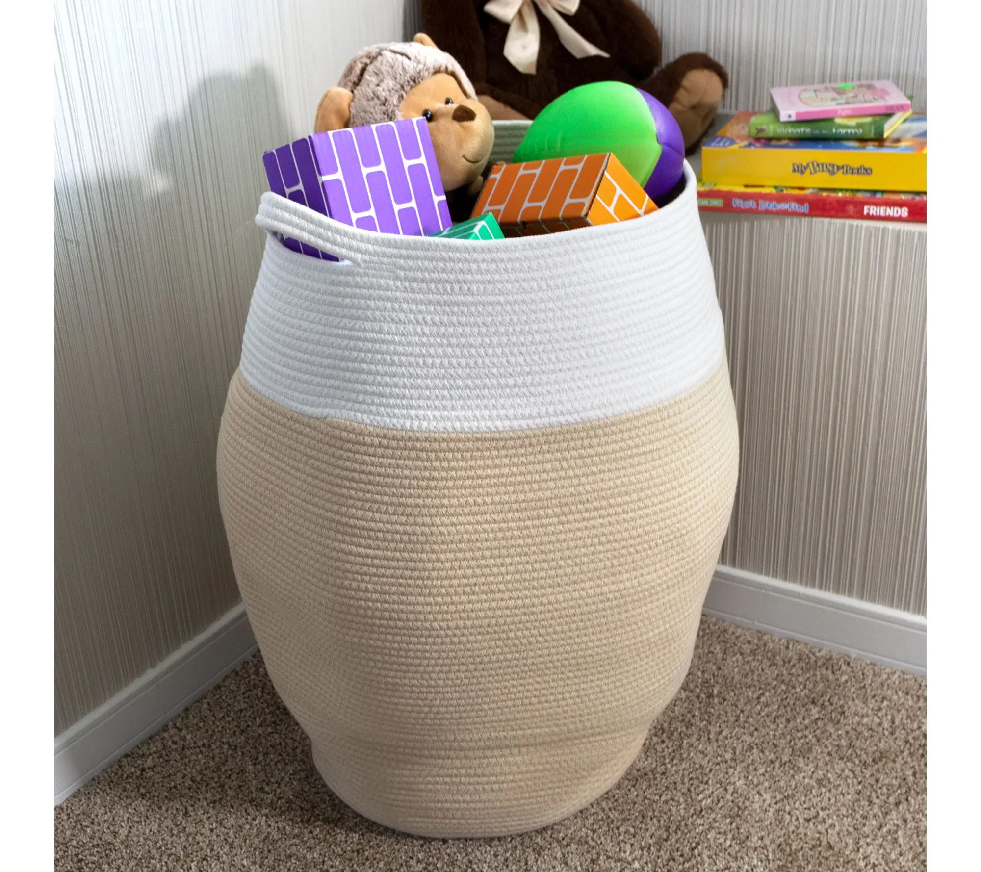 ·Curved cotton rope basket offers versatile storage for blankets, toys, or essentials