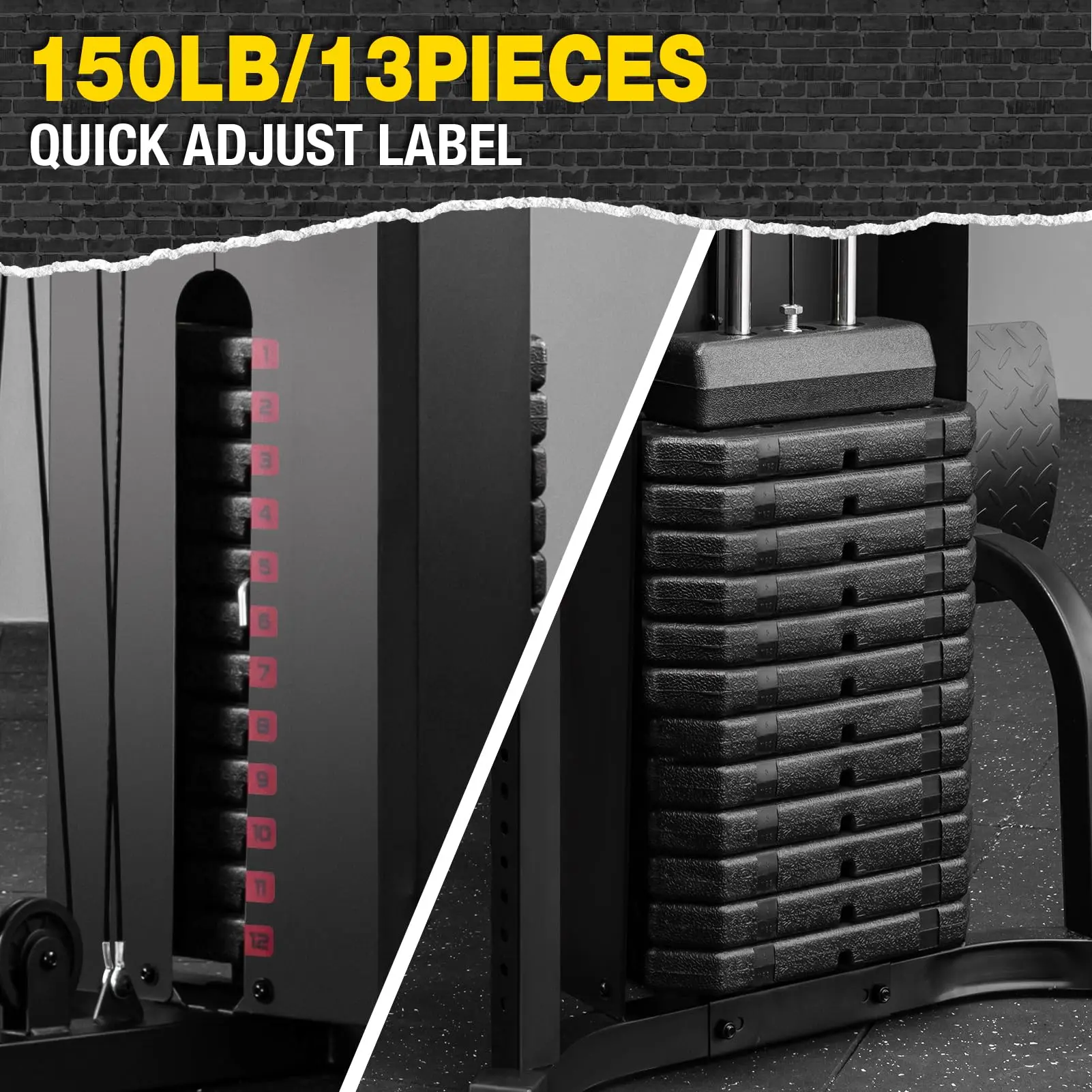 ·[150LBS weight stack] Ideal home gym partner for super set and drop set. Completely ditch the time and expense of replacing weights. Placing the weight has always been a hassle, and we don't want you to waste your time. Just find the right weight for you, and begin your training!