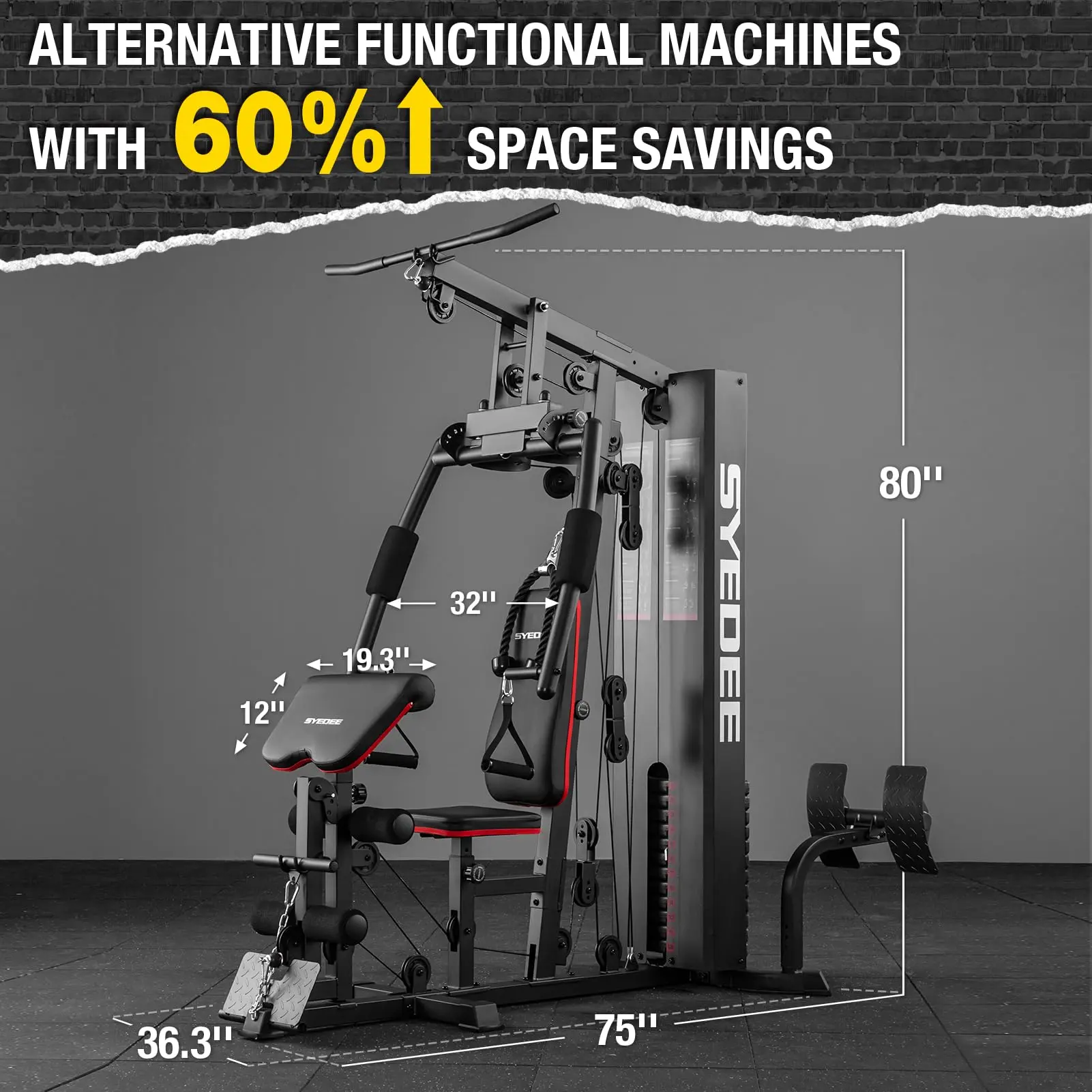Syedee Multifunctional Home Gym System, Home Gym Station with 100LBS Weight Stack, All in One Workout Machine for Full Body Strength Training