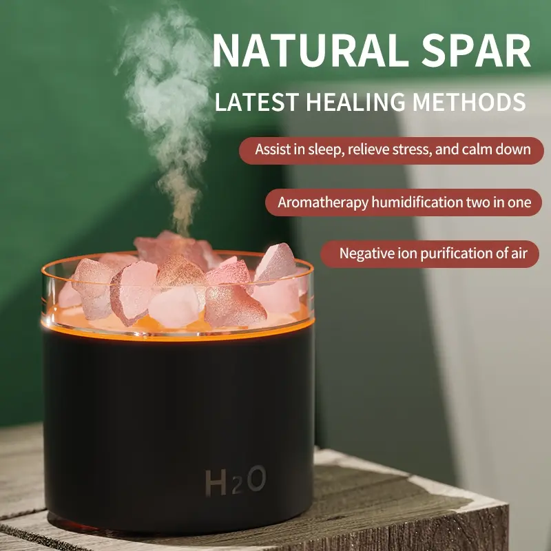 Home Humidifier with Aromatherapy Diffuser, Crystal Salt Stone Design, Colorful Lights, Ideal for Bedroom Living Room Hotel Multi-Room Use, Aroma Diffuser Humidifiers