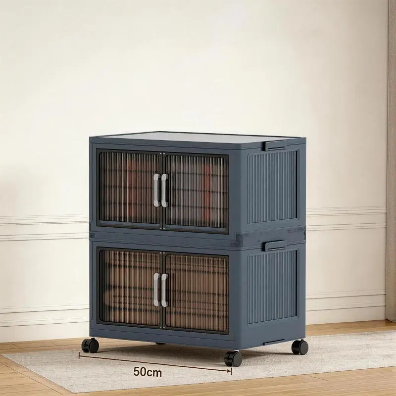 Home Multi Functional Stackable Storage Cabinet Front And Top Double Door Design Universal Wheels Movable Large Capacity Sundries Toy Clothes Organizer