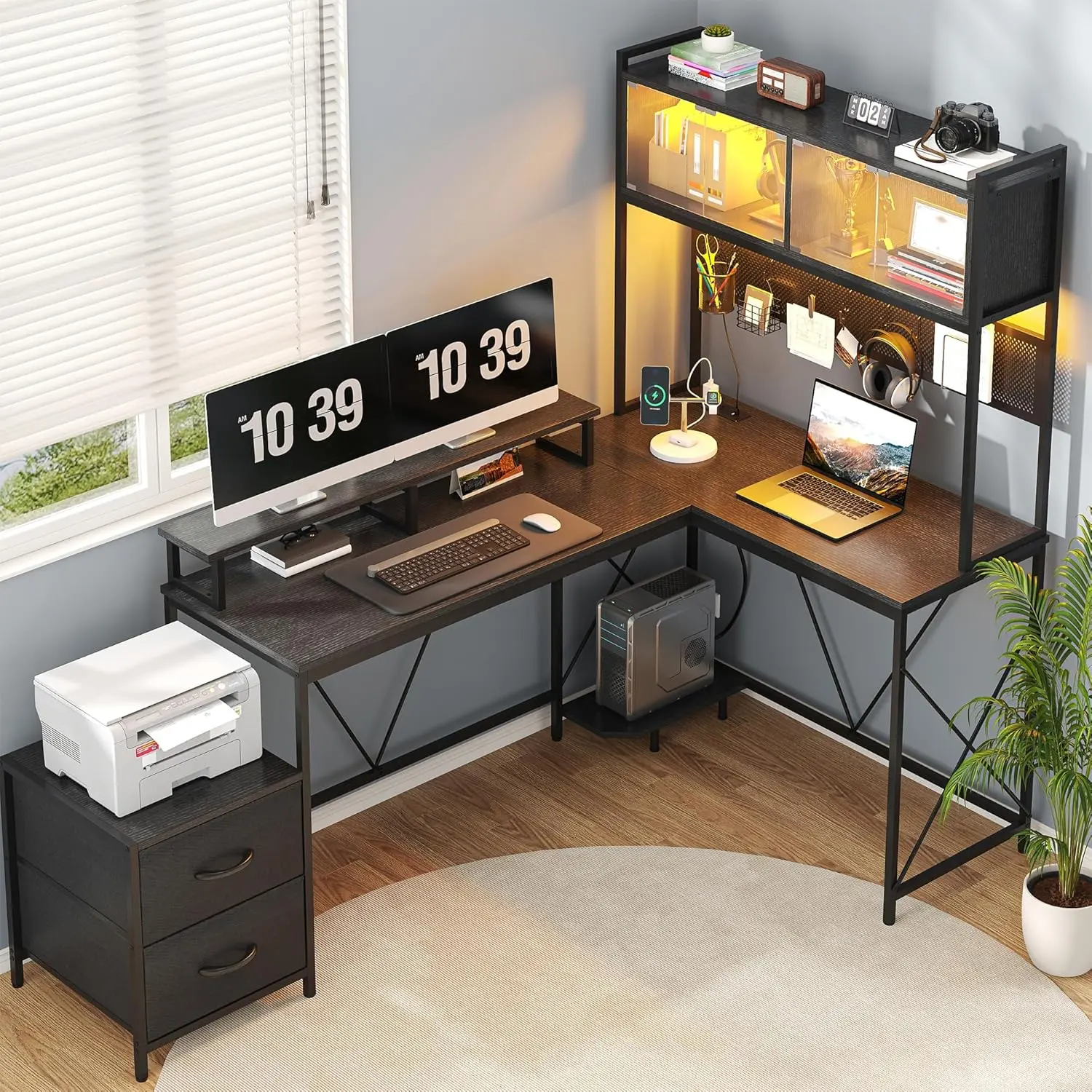 ·【Multifunctional & Versatile】Designed for versatility, this L-shaped desk fits perfectly in home offices, gaming rooms, bedrooms, or study areas. Its sleek design complements any decor style, while the large surface, ample storage, and DIY features make it ideal for work, gaming, studying, or even crafting—meeting all your daily needs in one piece of furniture