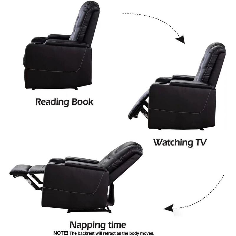 ·Elegant Style: The sleek black leather upholstery and modern design add a touch of sophistication to your entertainment space, elevating the ambiance of your home theater.