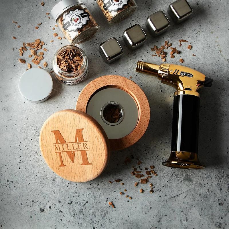 • Includes a wood smoker top, infusion bottle, 8 expertly chosen botanicals, 3 wood chip blends, whiskey stones, and bar tools. The set offers a variety of botanicals like chocolate, cardamom, and orange peel. Combine them with aromatic smoke for custom creations.