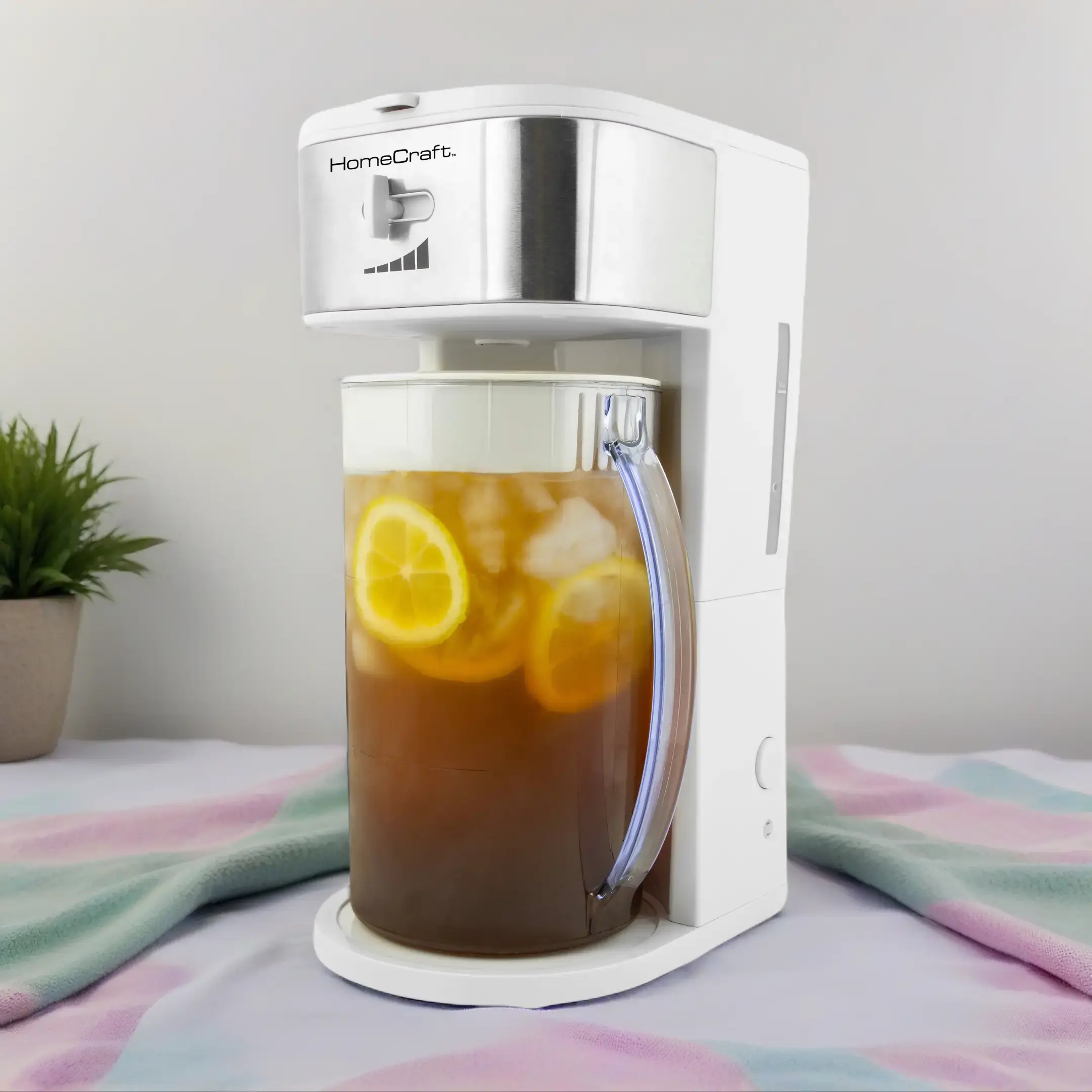 Enjoy smooth, delicious drinks at home! The HomeCraft 3-Quart White Café' Ice Tea and Iced Coffee Brewing System brews the best iced coffees, iced lattes, iced tea, lemonade, flavored water & more! This versatile system is perfect for any beverage lover.