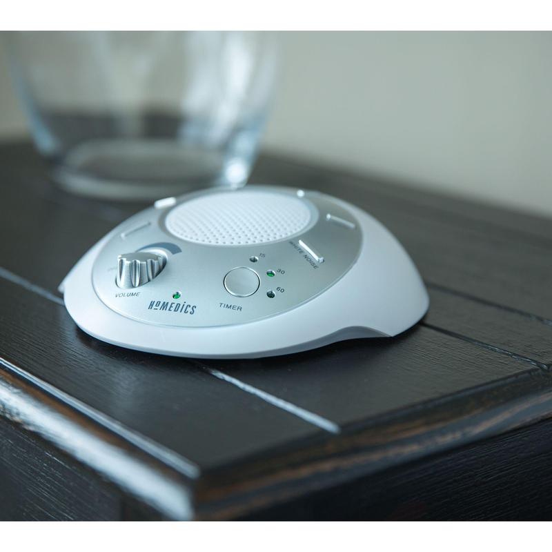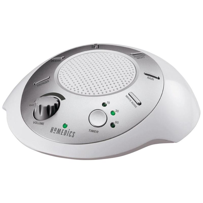 Block out background noises and enjoy a more restful sleep with Soundspa. The portable device comes with six soothing sounds and has a built-in auto-off timer. From HoMedics.