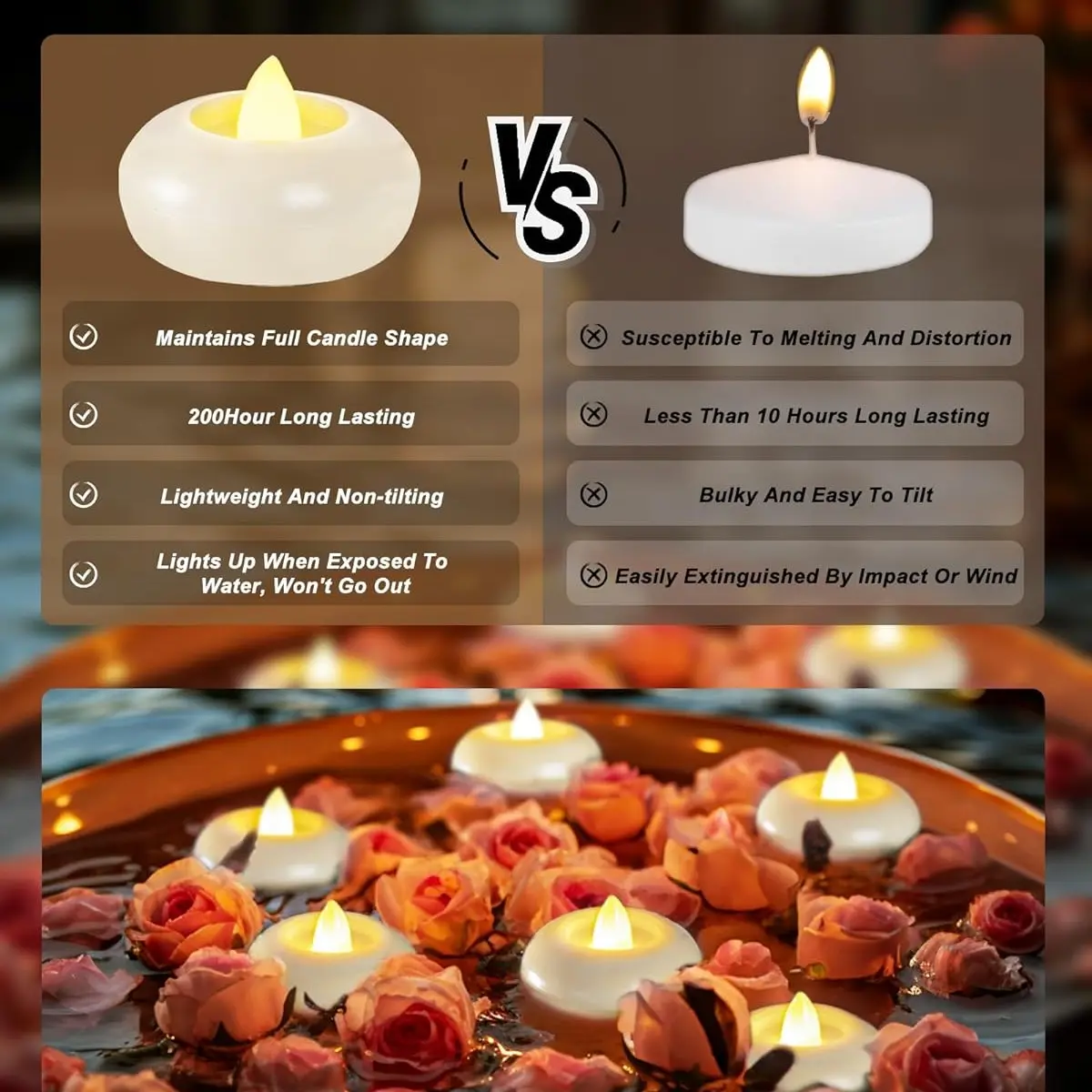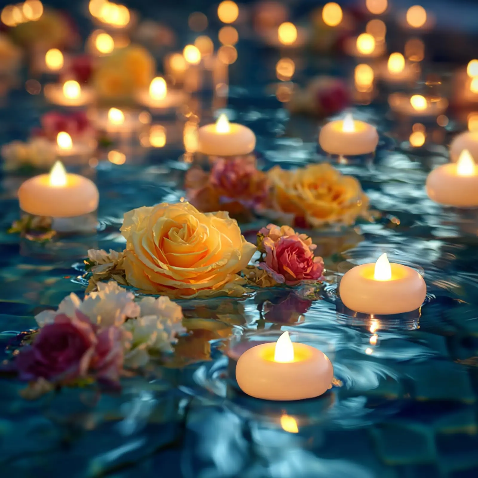 ·Versatile usage: These floating tealight candles are suitable for decorating various events, creating a romantic and relaxing ambiance. They are perfect for both indoor and outdoor occasions, such as spas, bathrooms, restaurants, weddings, parties, and festival decorations.