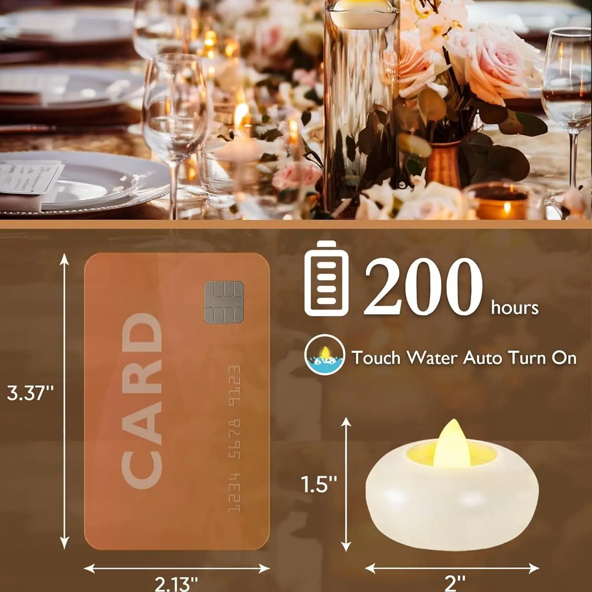 ·Long-lasting: Each battery has a minimum of 200 hours of lifetime, compared to traditional candles that last about 10 hours.