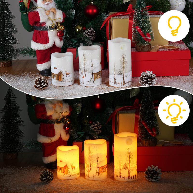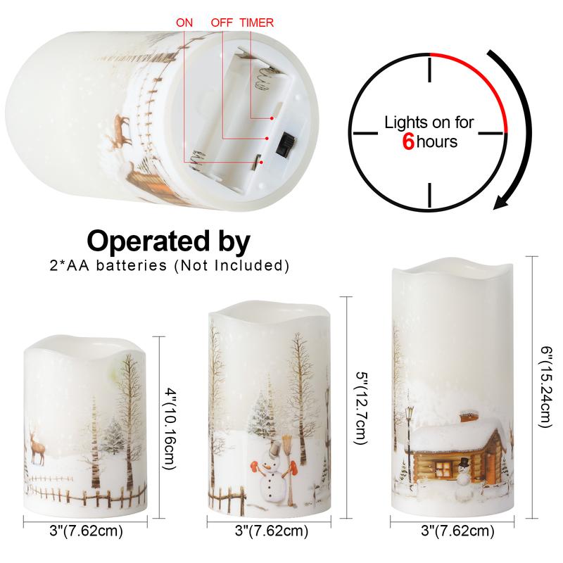 These Homemory Christmas Flameless Candles are battery operated with snowman timers. They feature real wax LED pillar candles, perfect for rustic country home, farmhouse, and cabin decor. The set includes 3 candles, adding a cozy ambiance to your space. Ideal for holiday decorations, these candles are a charming addition to any setting.