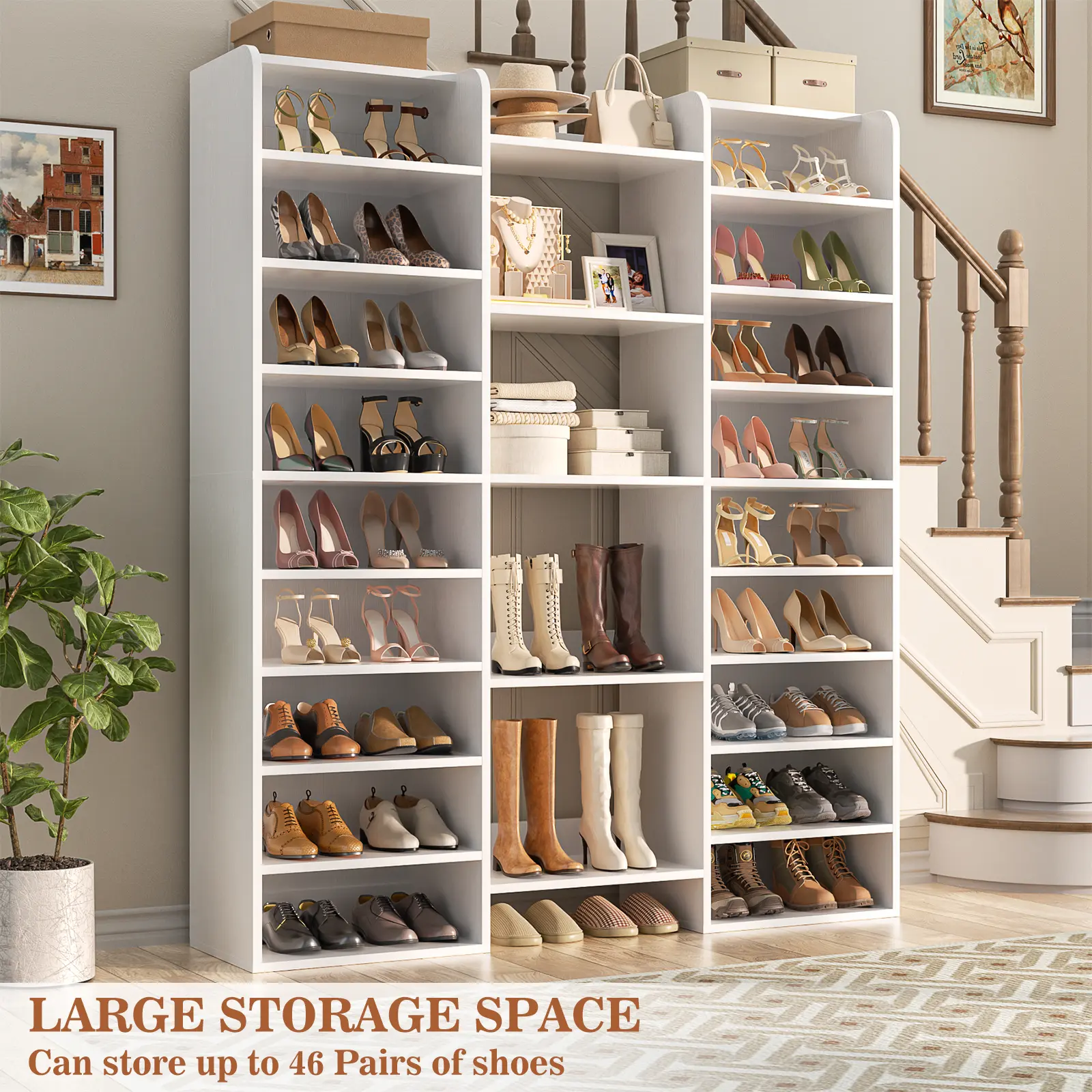 The Homieasy 14-Tier Shoe Cabinet is a versatile wood shoe storage organizer. Perfect for entryways, this freestanding shoe rack cabinet features 22 open cubbies. Ideal for front door entrances, living rooms, hallways, and bedrooms. This cabinet offers ample storage space for your shoes.