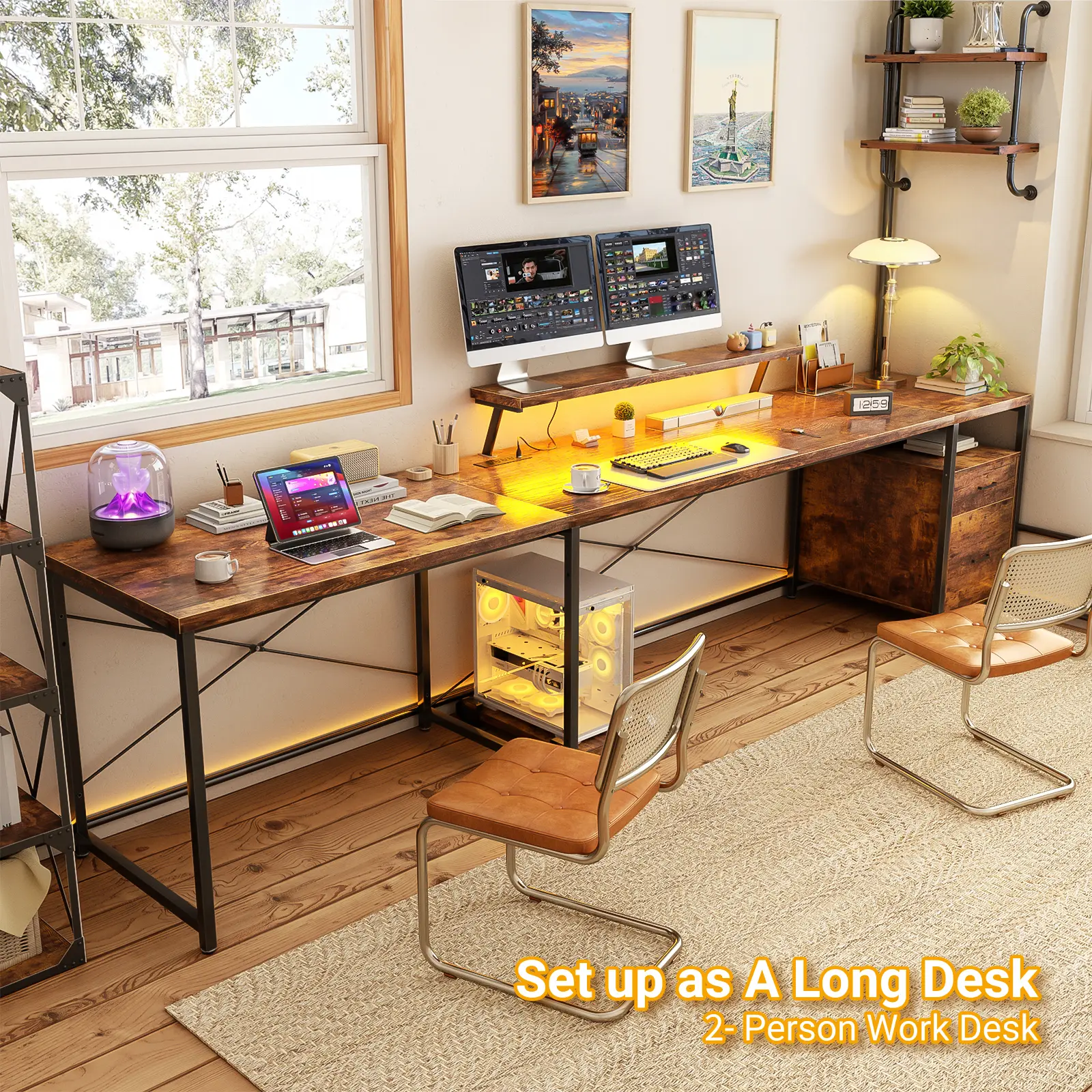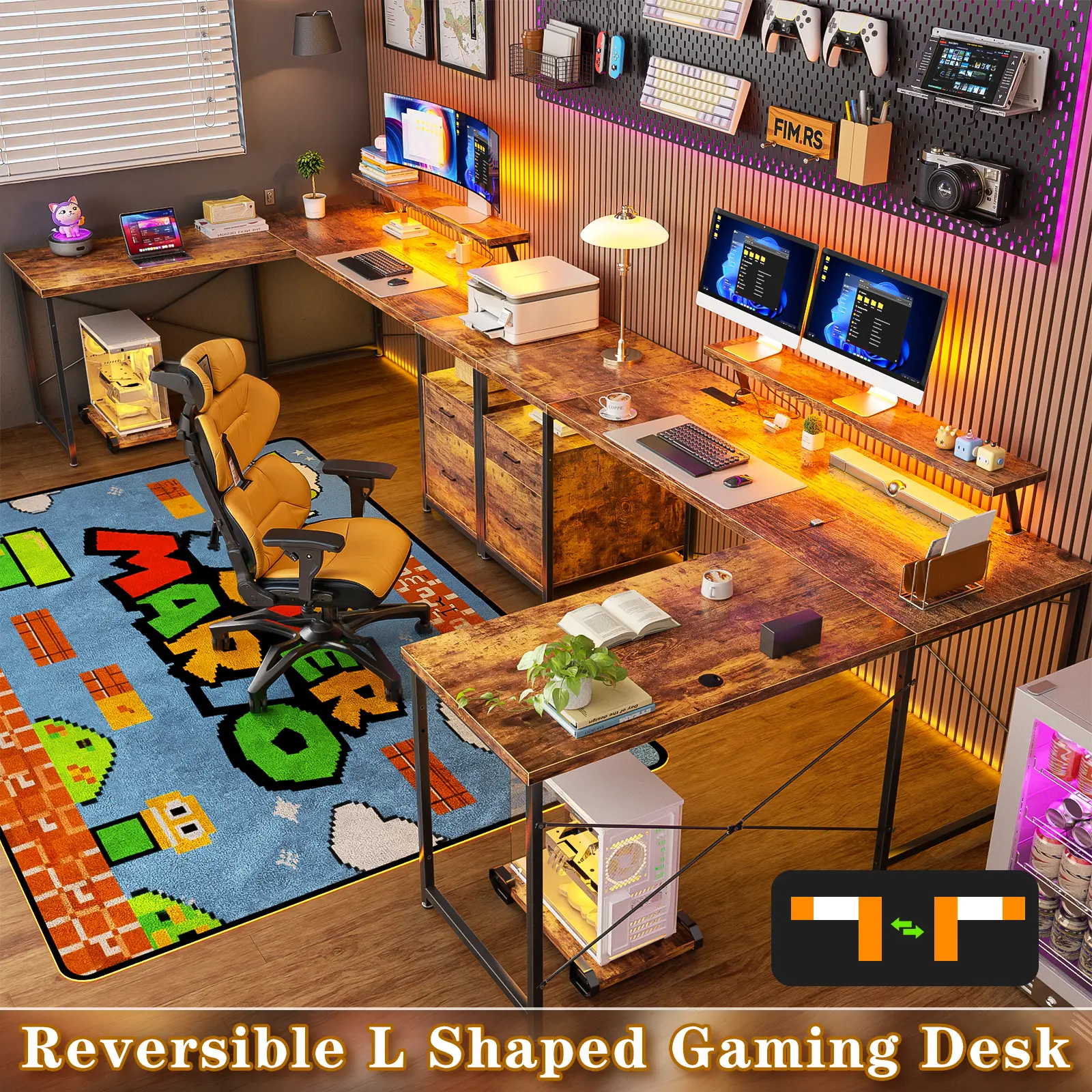 ·【2-in-1 Versatile Layout】Customize your workspace effortlessly! This multifunctional desk can be arranged as an L-shaped corner desk (66.1" x 51.2") or a long desk (94.4" x 19.7"), perfect for fitting into any room layout. The spacious, water-resistant, and scratch-resistant desktop accommodates dual monitors, gaming gear, and office supplies, making it ideal for remote work, studying, or gaming.