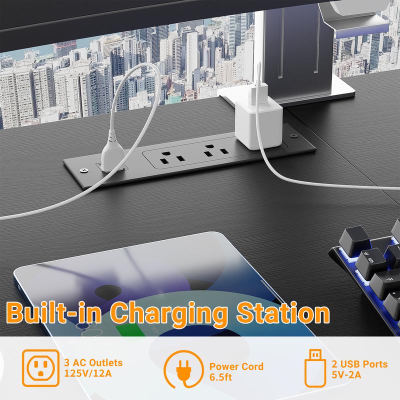 ·【USB Charging Ports & Power Outlets】 This computer desk features 3 power outlets, 2 USB ports and a 6.56ft power cord, providing fast charging interface for your tablets, mobile phones, headphones, mobile power supplies, and game devices to make your life more convenient..