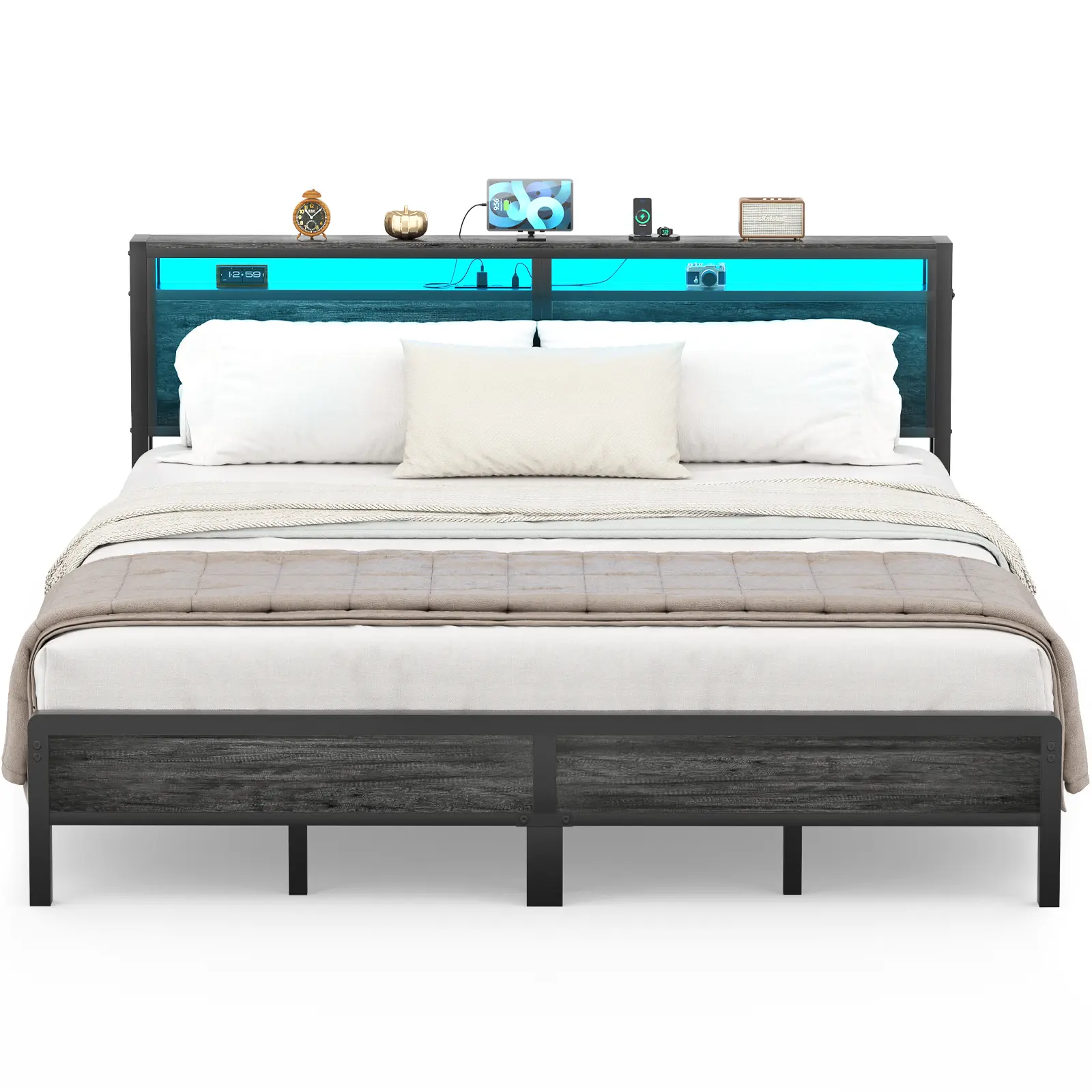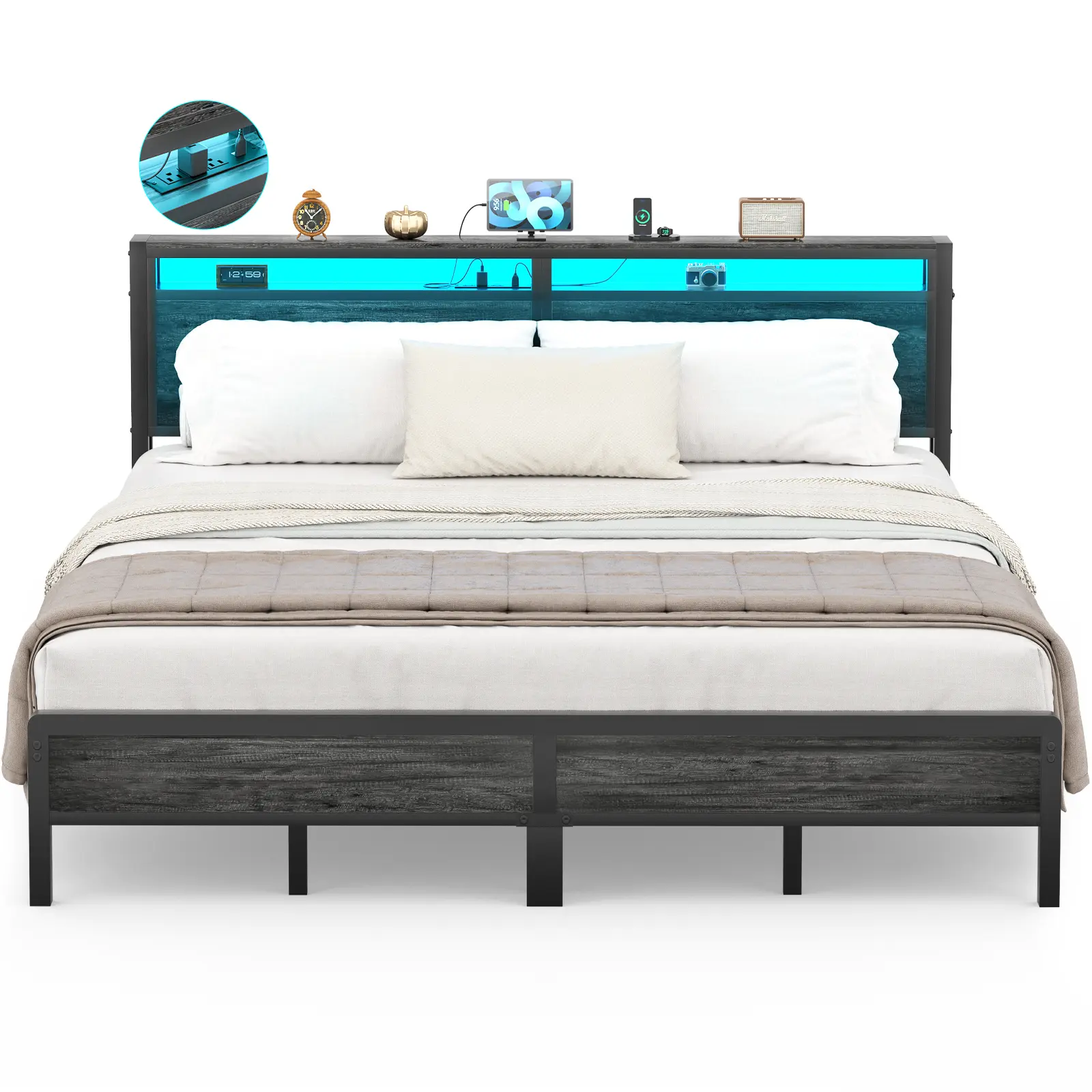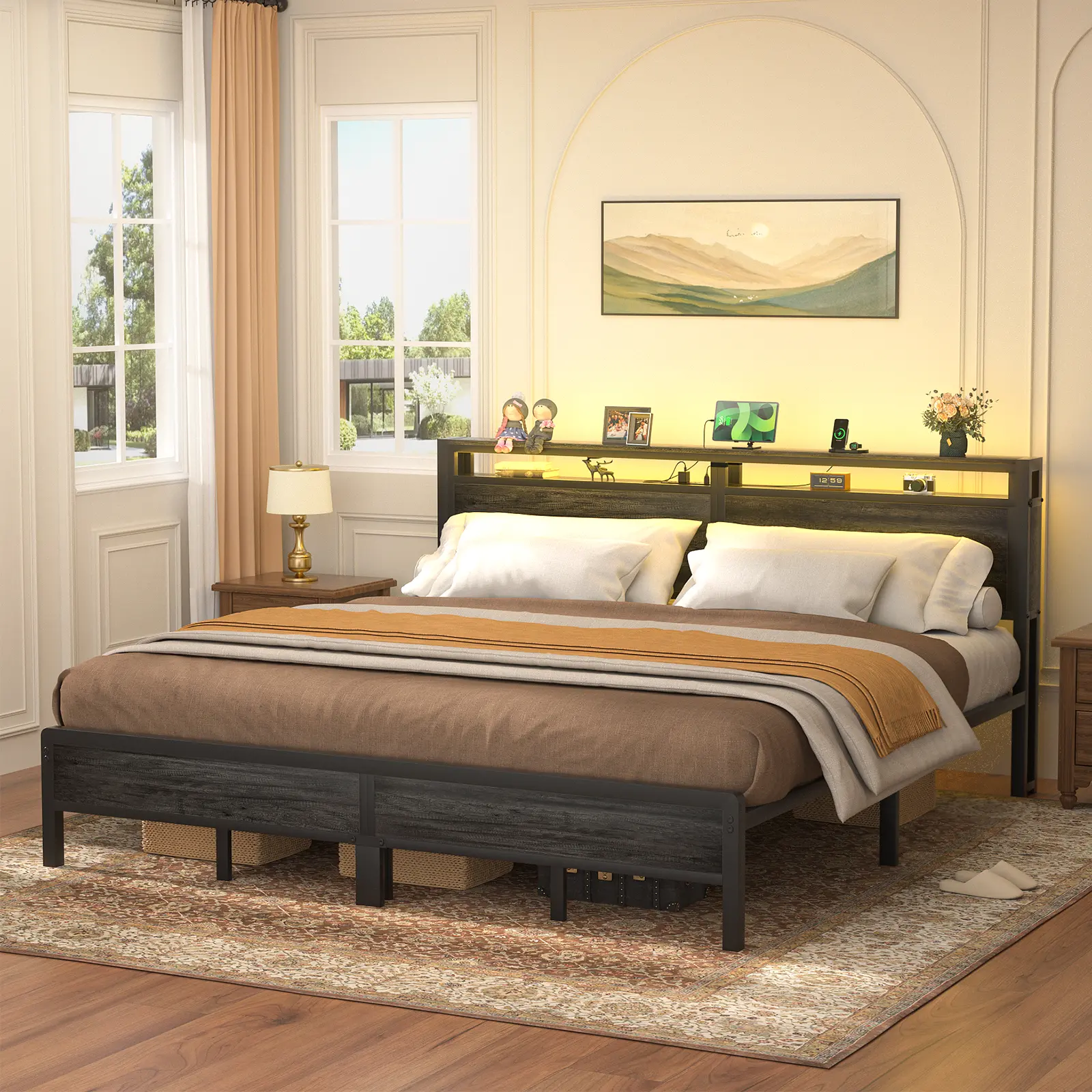 Built-in headboard with 3 POWER OUTLETS + 2 USB PORTS! Charge phones/tablets while binge-watching without leaving bed! Store books, lamps, snacks —messy nights solved!