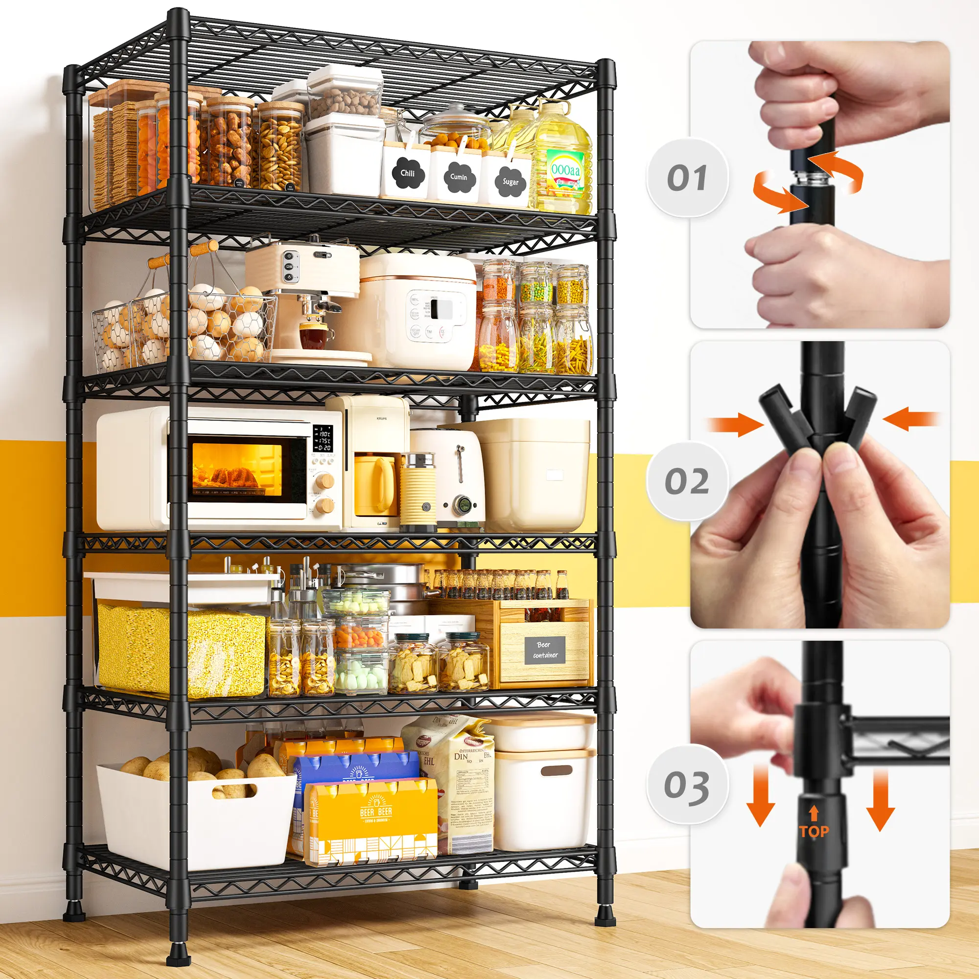 Extremely Durable & Heavy Duty Steel Metal Shelves Made of heavy-duty steel with advanced powder coating, this rack is sturdy, rust-resistant, and oxidation-resistant. Each shelf can hold 170 lbs.