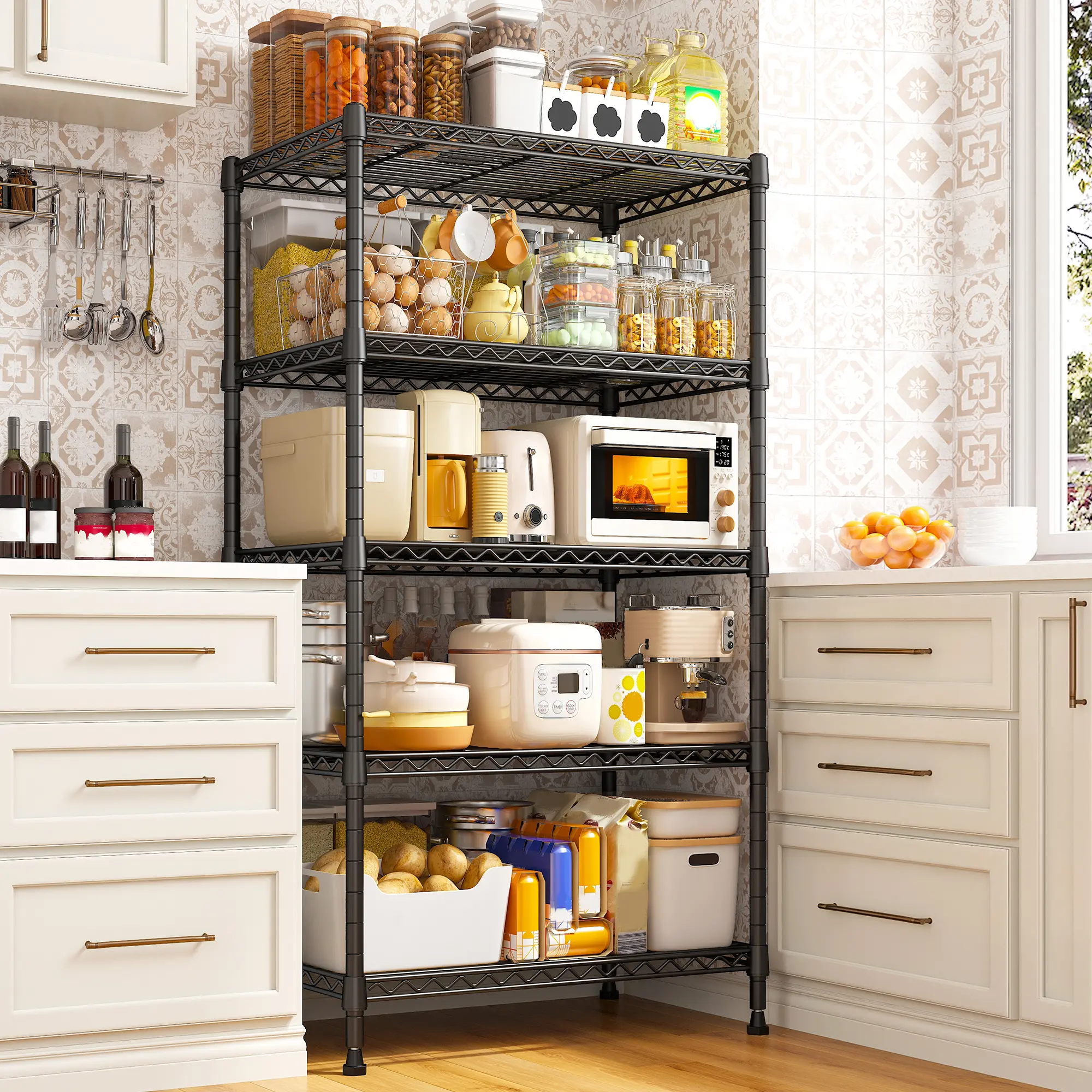 Multifunctional & Adjustable Garage Shelving Adjust the height of each layer with high-quality clips to fit heavy-duty items. Perfect for kitchen, living room, bathroom, garage, etc.