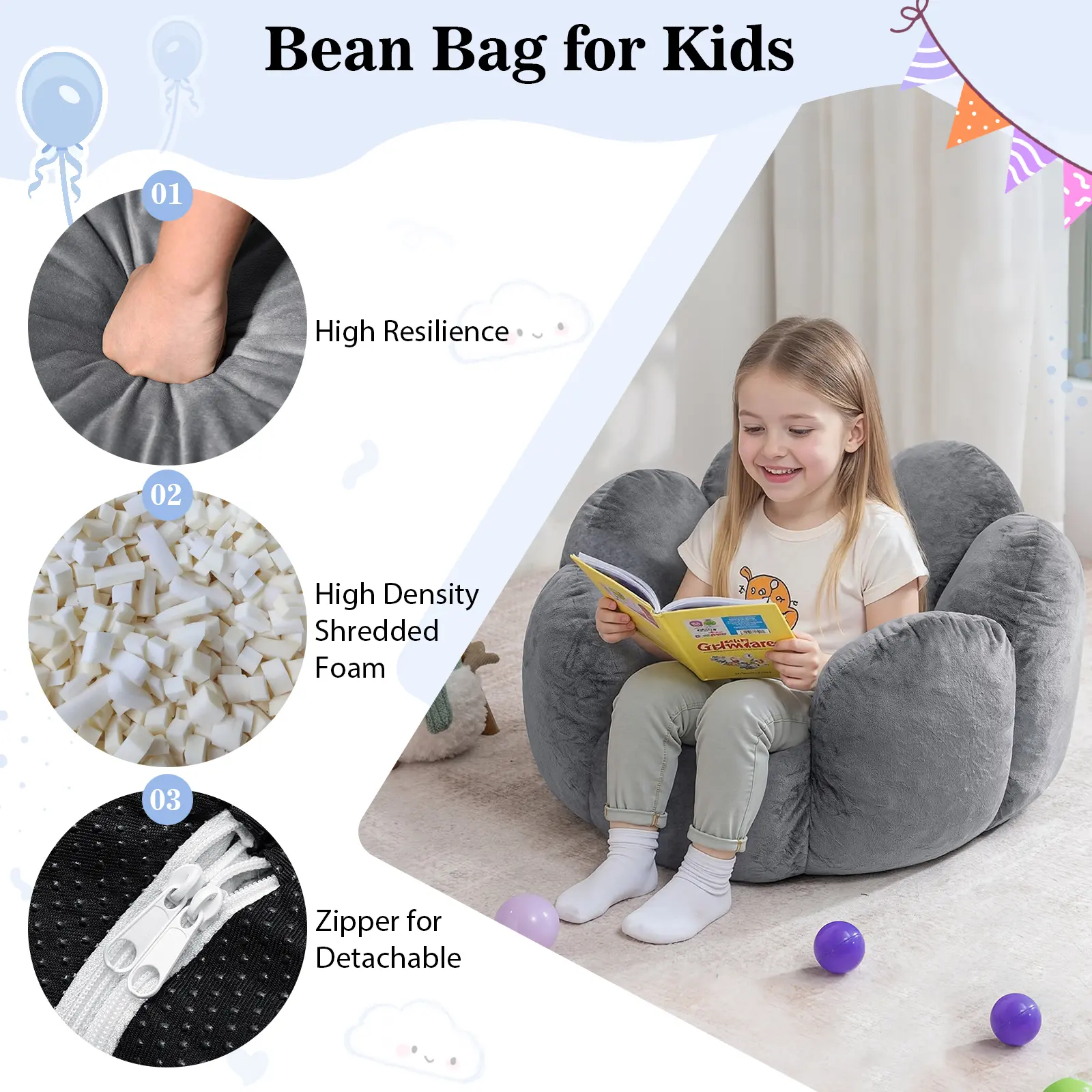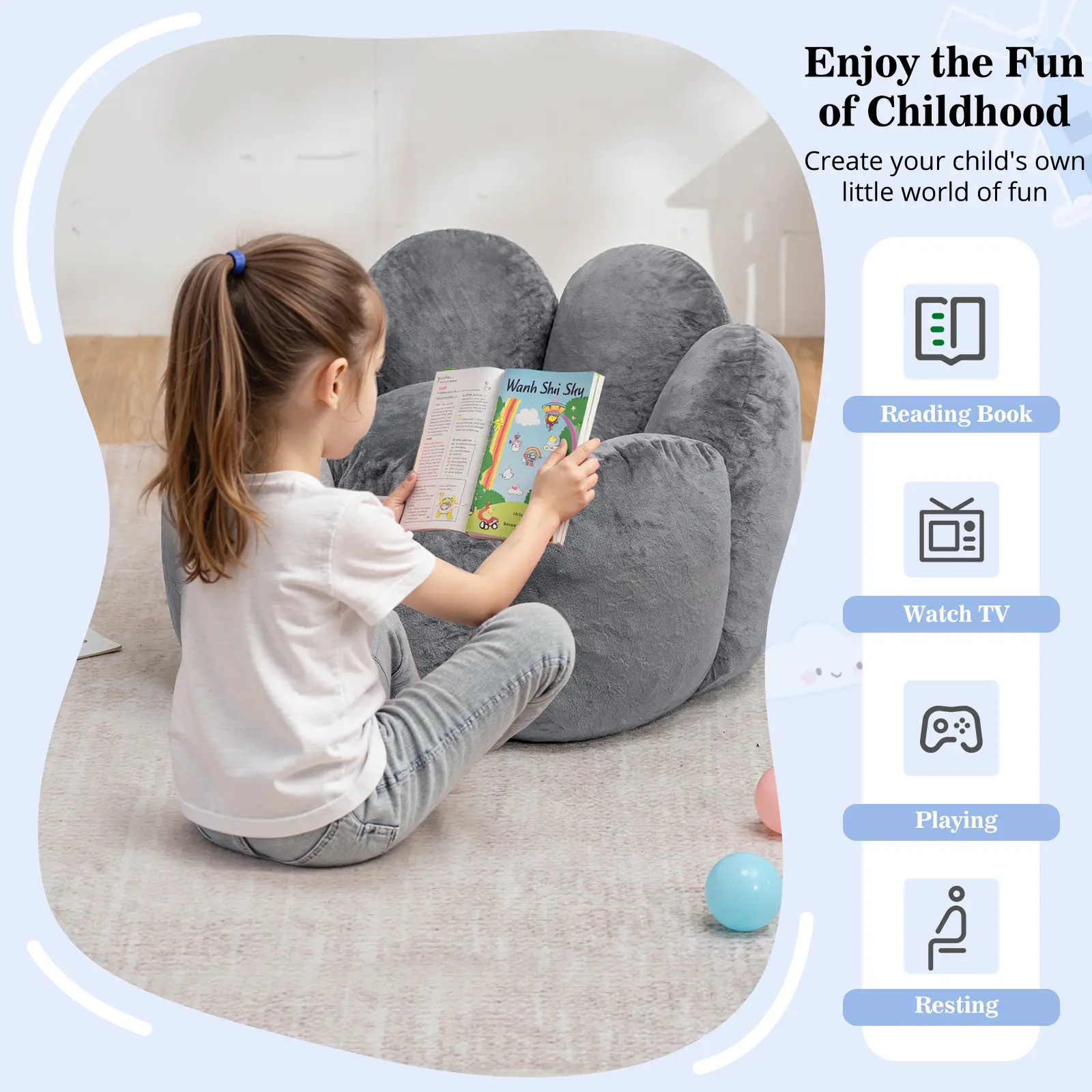 ·Lightweight & Kid-Friendly – Easy for kids to move anywhere—great for reading, gaming, watching TV, or relaxing. Certified safe for children.