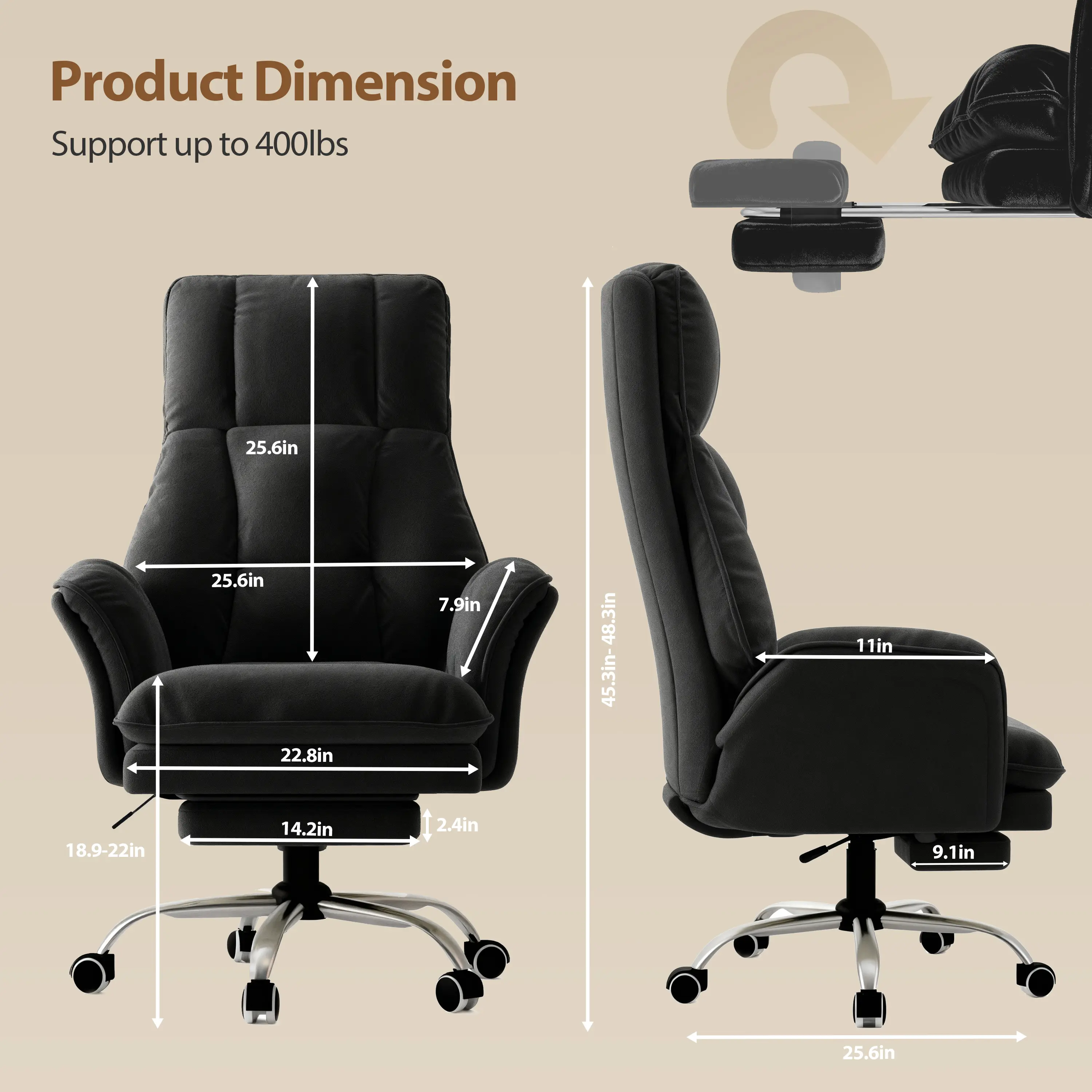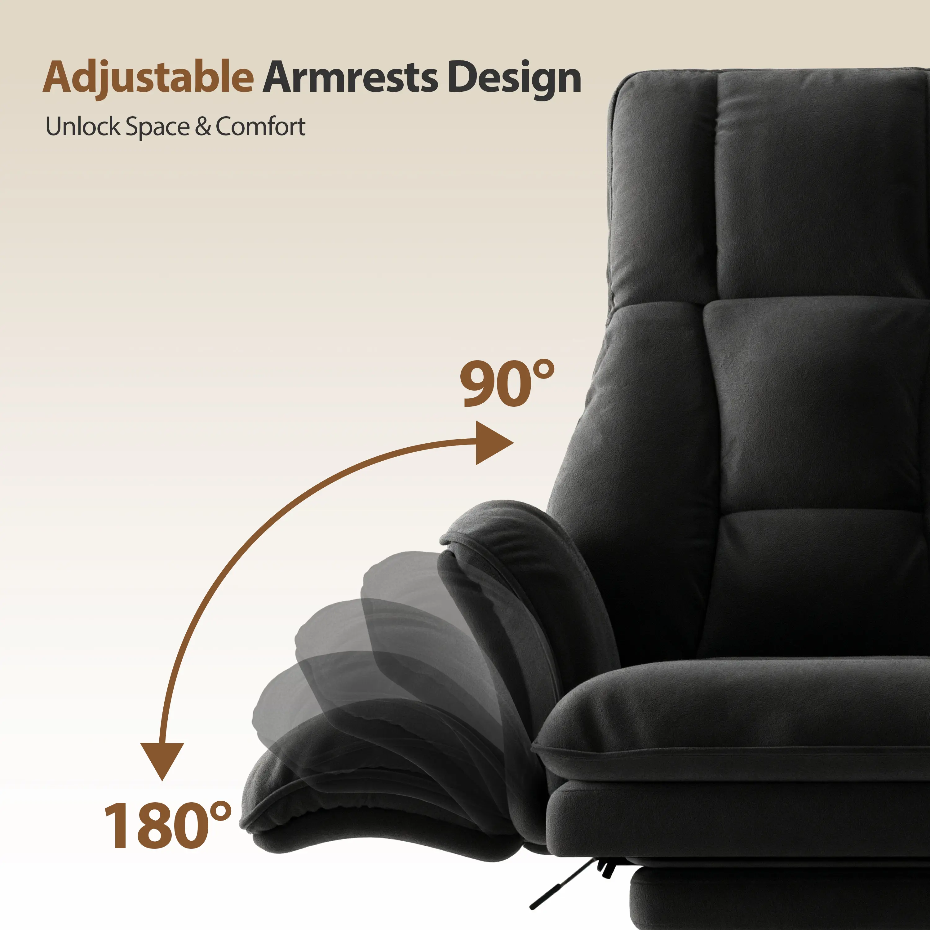 ¡Adjust armrests 90°â180° in seconds.