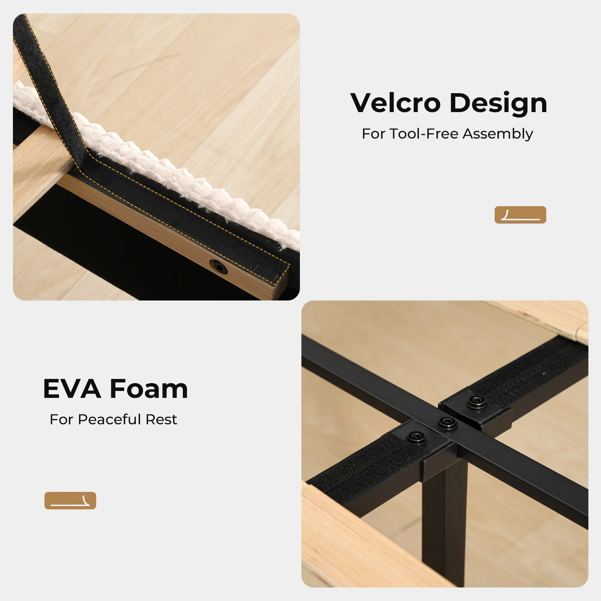 ·Built with a strong steel frame, this tall bed frame is silent and shake-free. The full bed frame ensures unwavering peace of mind and reliable support.