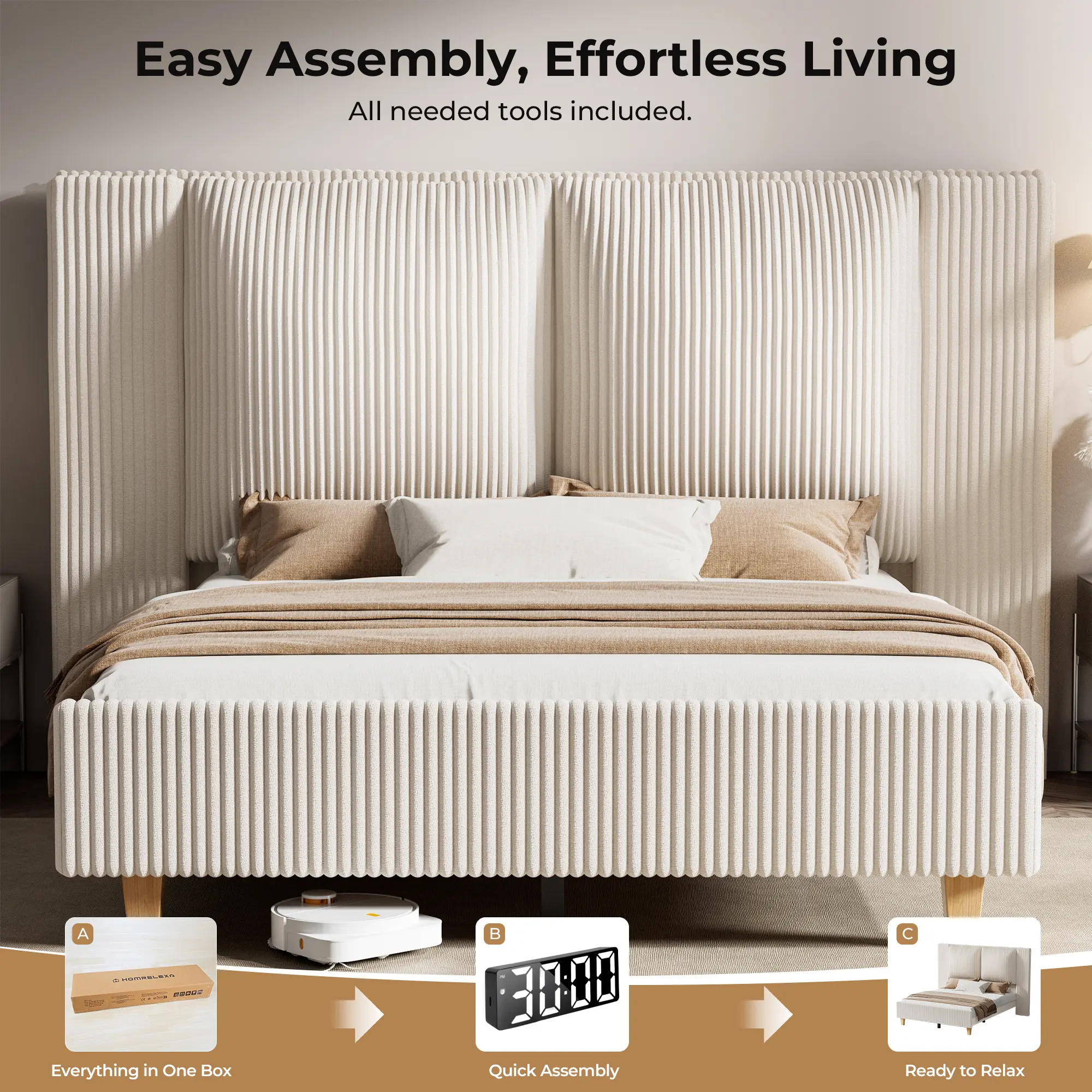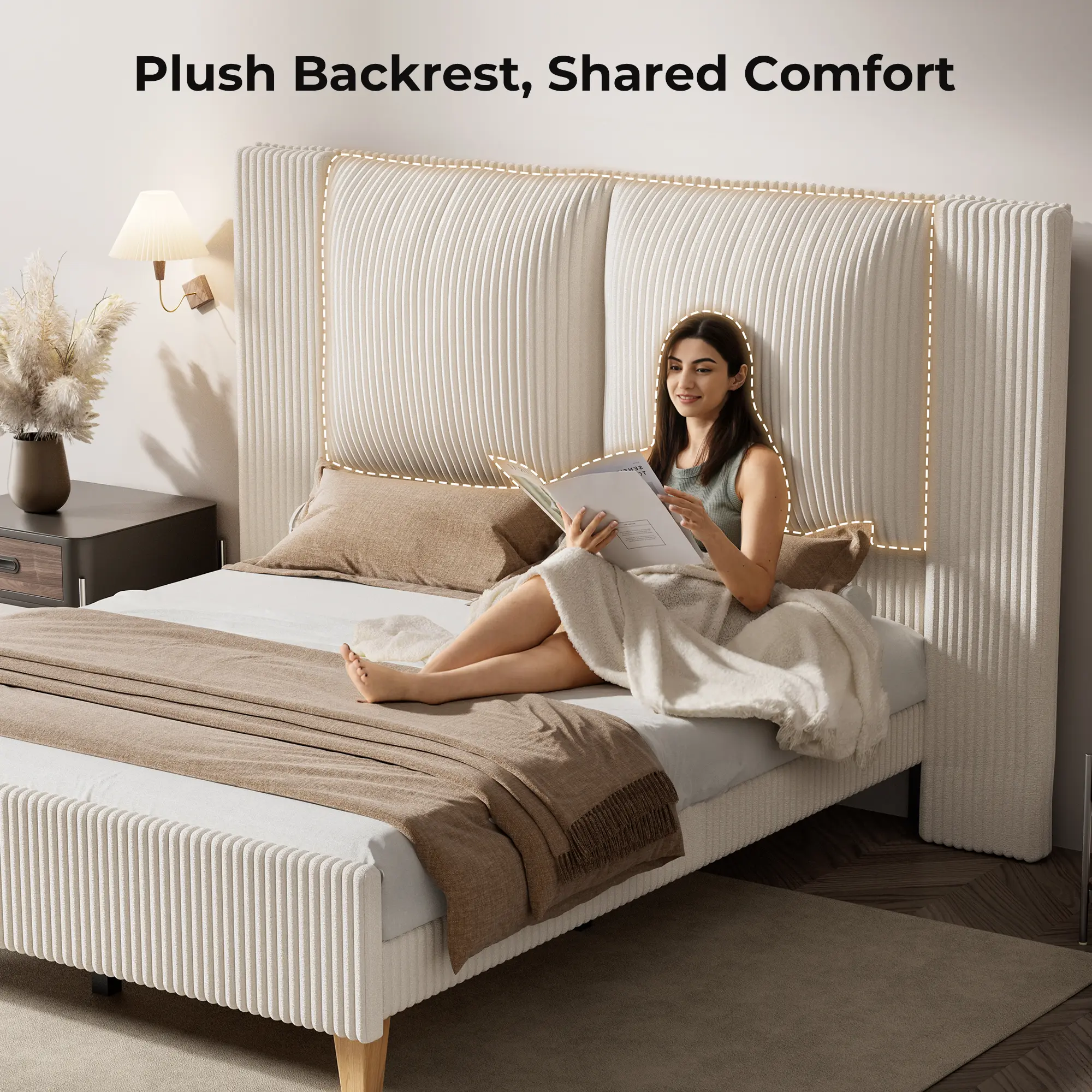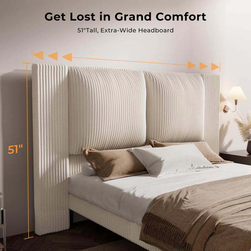 ·This bed frame features a 51" tall headboard with thick padding. It provides complete back support for reading, working, or relaxing. The plush comfort ensures a comfortable experience in your king bed.