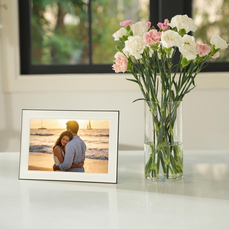This is a great digital picture frame! The display screen is very bright and clear. It couldn’t be easier to set up, only taking me about five minutes. The app makes it easy to share photos and videos directly from the phone using Wi-Fi, which is very convenient. Highly recommended product!