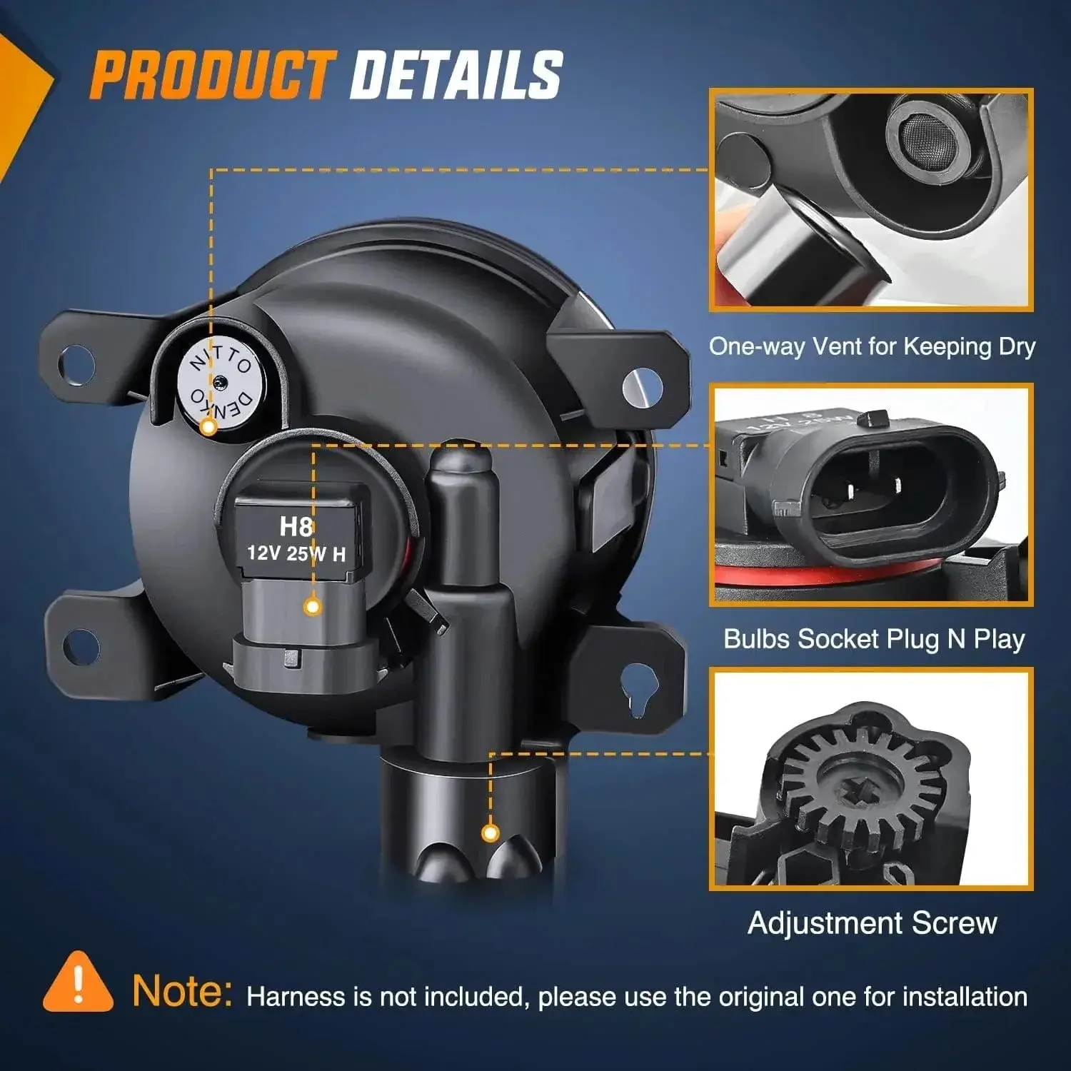 ·Packages: Comes with a pair of fog lights (driver's side and passenger's side), H8 bulbs, silica gel desiccant. Professional installation is highly recommended.