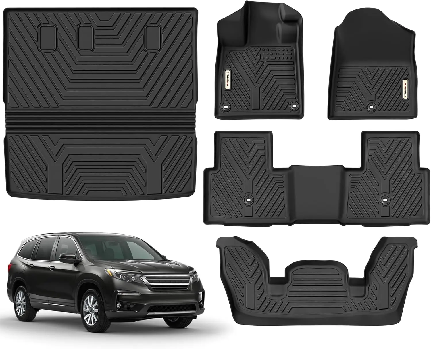 5. YITAMOTOR Honda Pilot 2025 2024 2023 Compatible with Floor Mats and Trunk Mat with Backrest Mat TPE-LITE,Honda Pilot Car Mats 7/8 Passenger Full Set