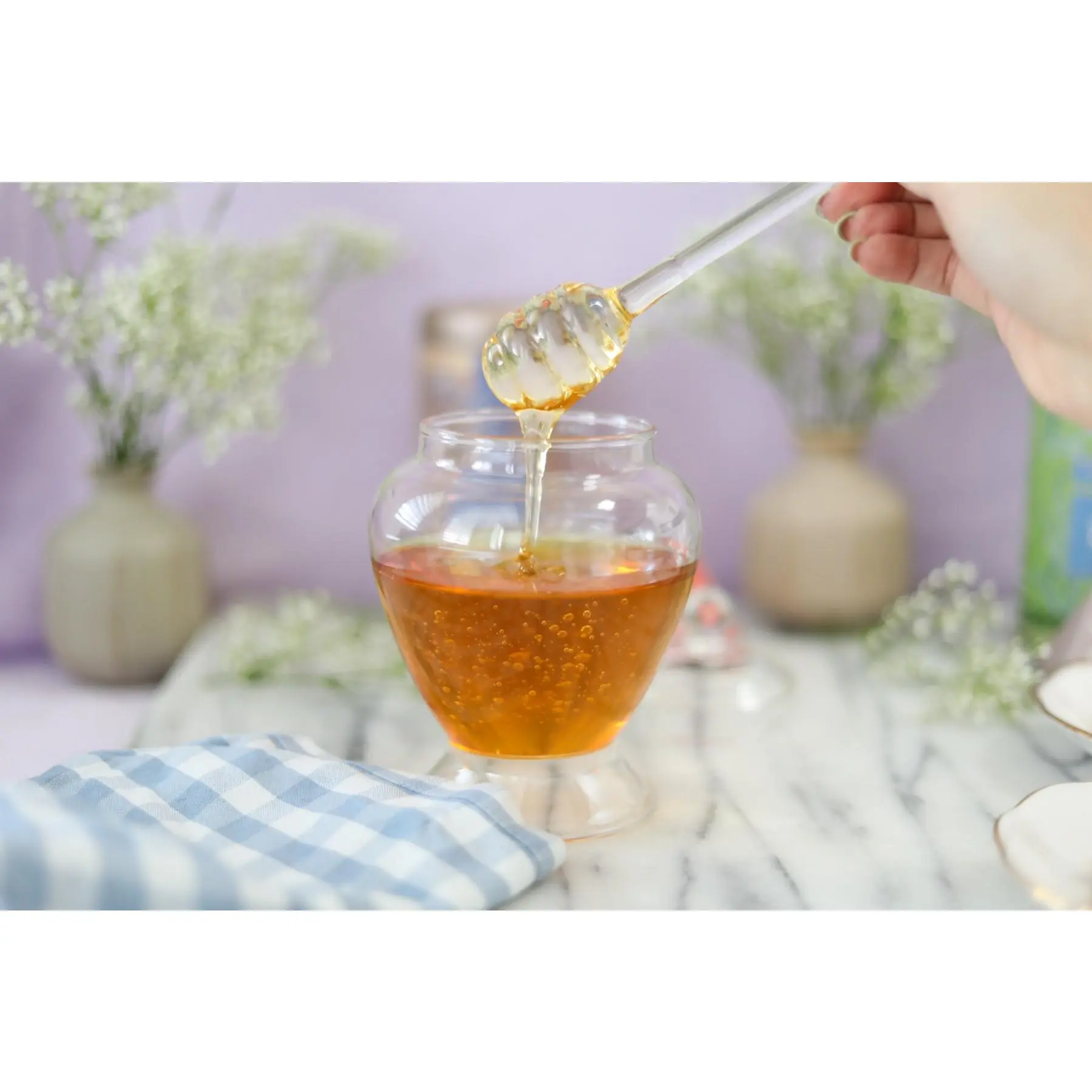 Serving honey can be tricky - a regular tablespoon just won't do when it comes to drizzling. Teabloom's honey dipper provides an elegant solution for serving honey.