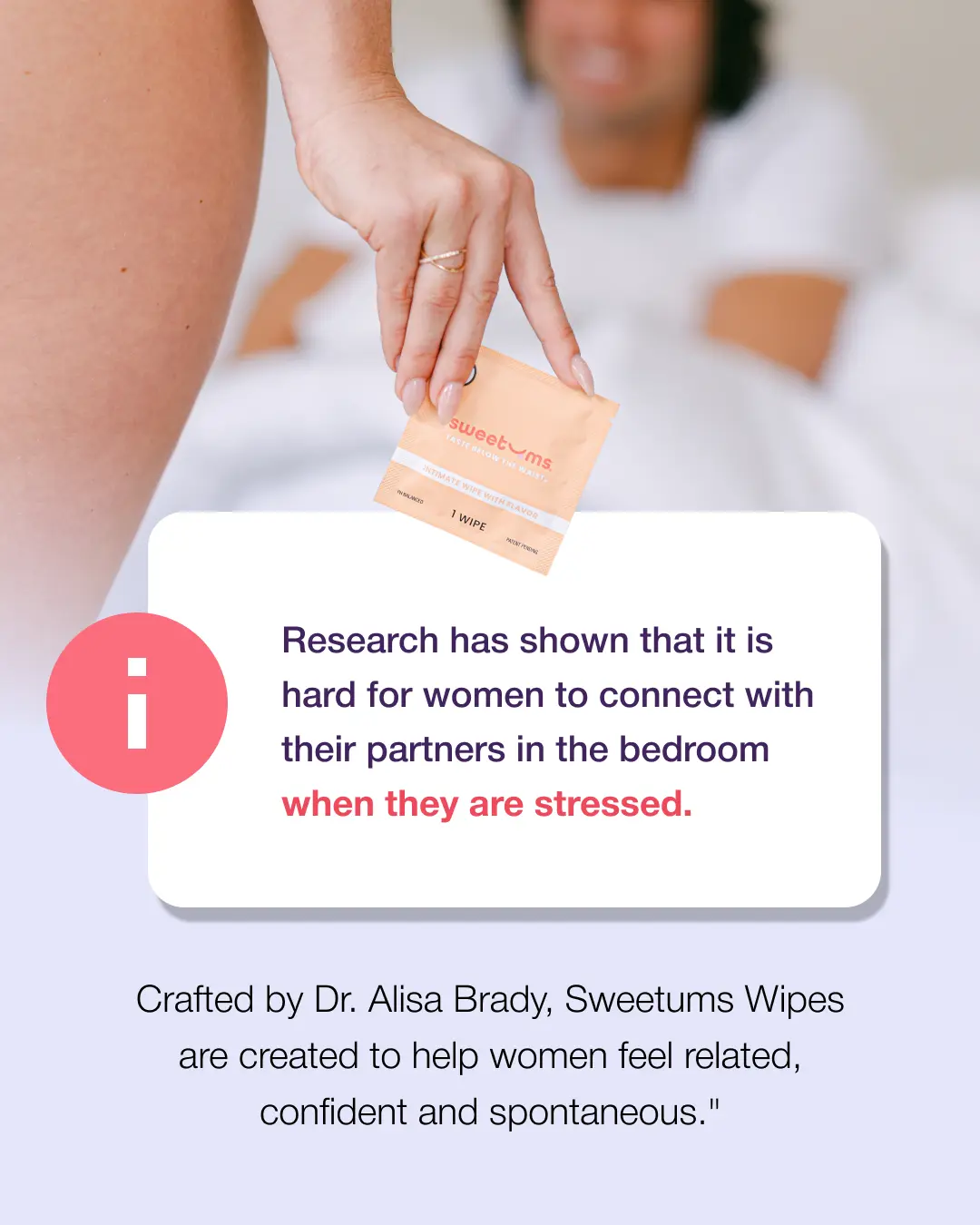 Sweetums wipes have been a game changer through and through. Not only for mattress mambo, but I have them for the gym too! I have super sensitive PH and get yeast infections easily, and I can say after months of use not a single reaction!