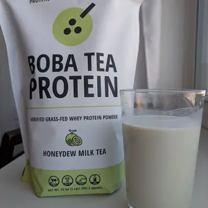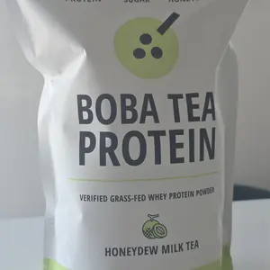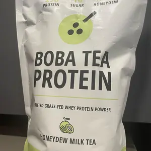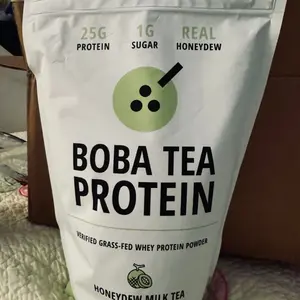 The honeydew milk tea protein powder tastes like you would order from a boba tea shop, and it's also great if you need to catch up your protein intake in the evening because this one has no caffeine.