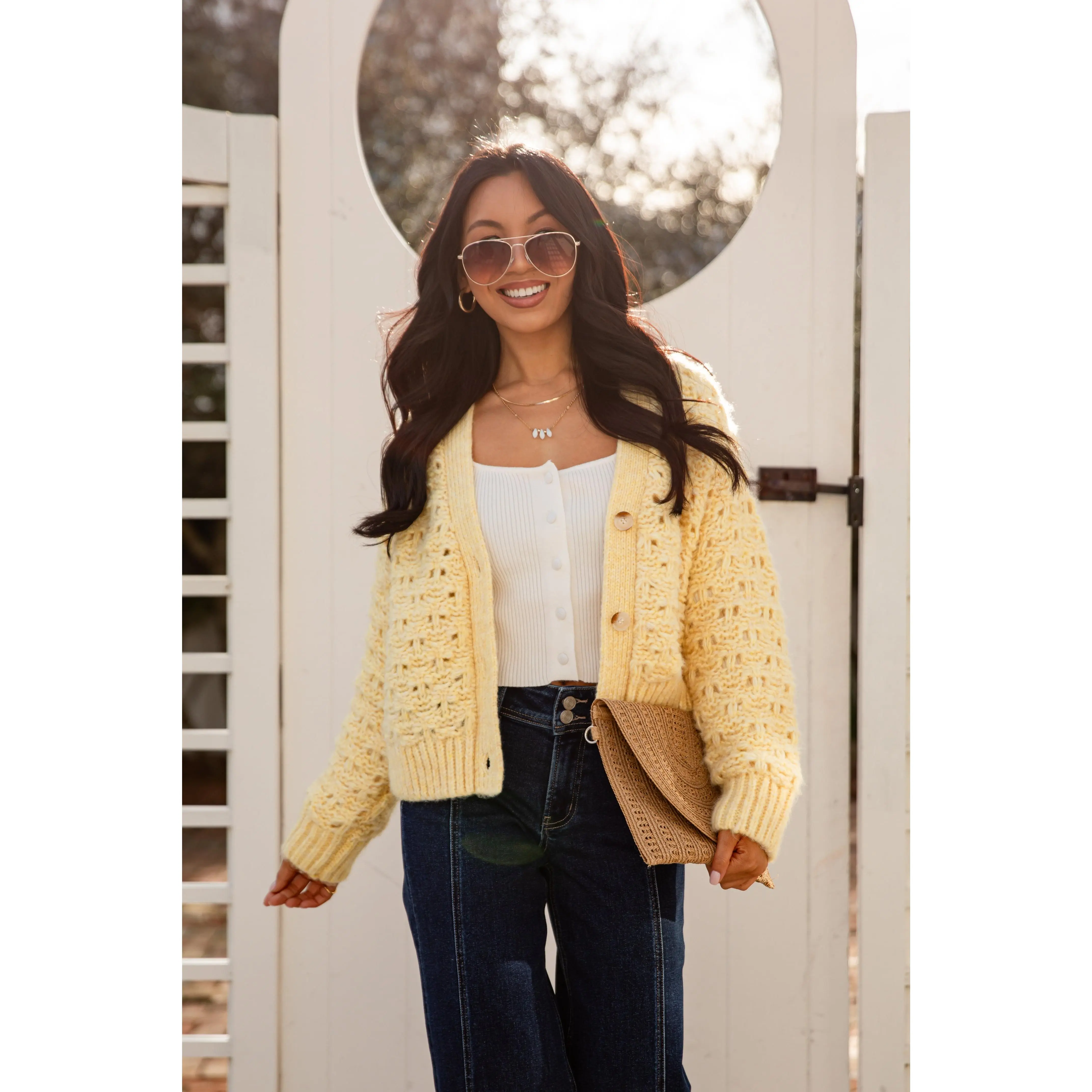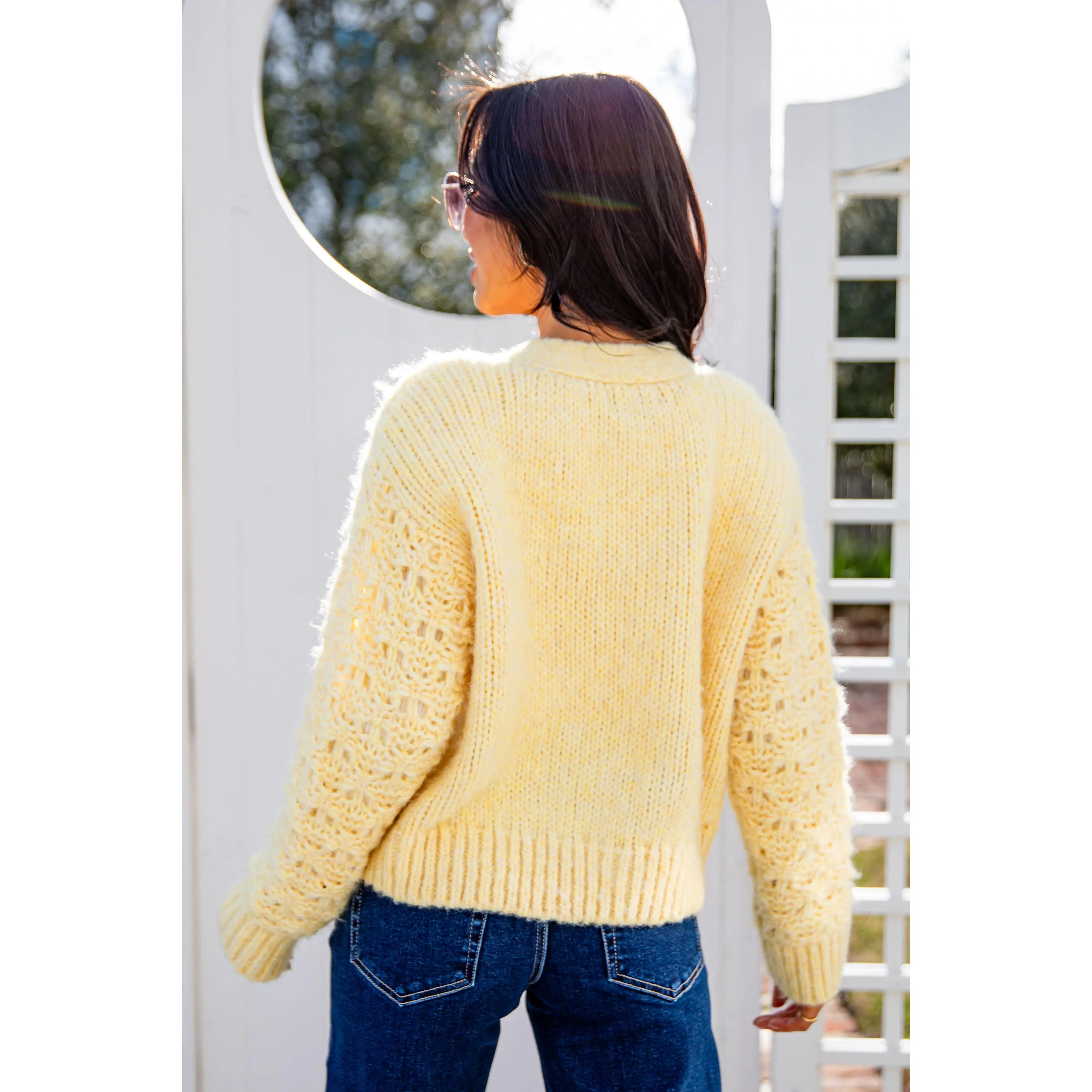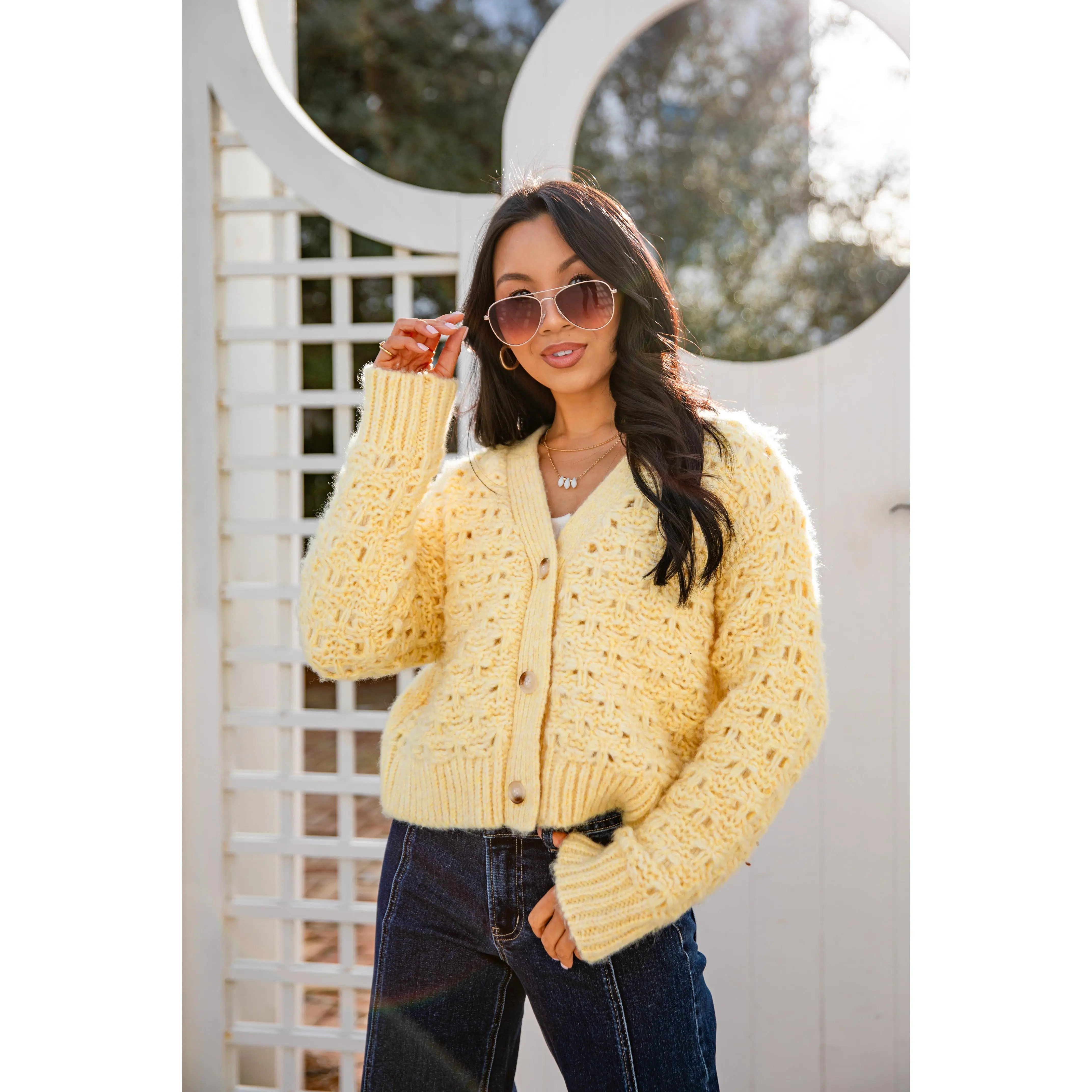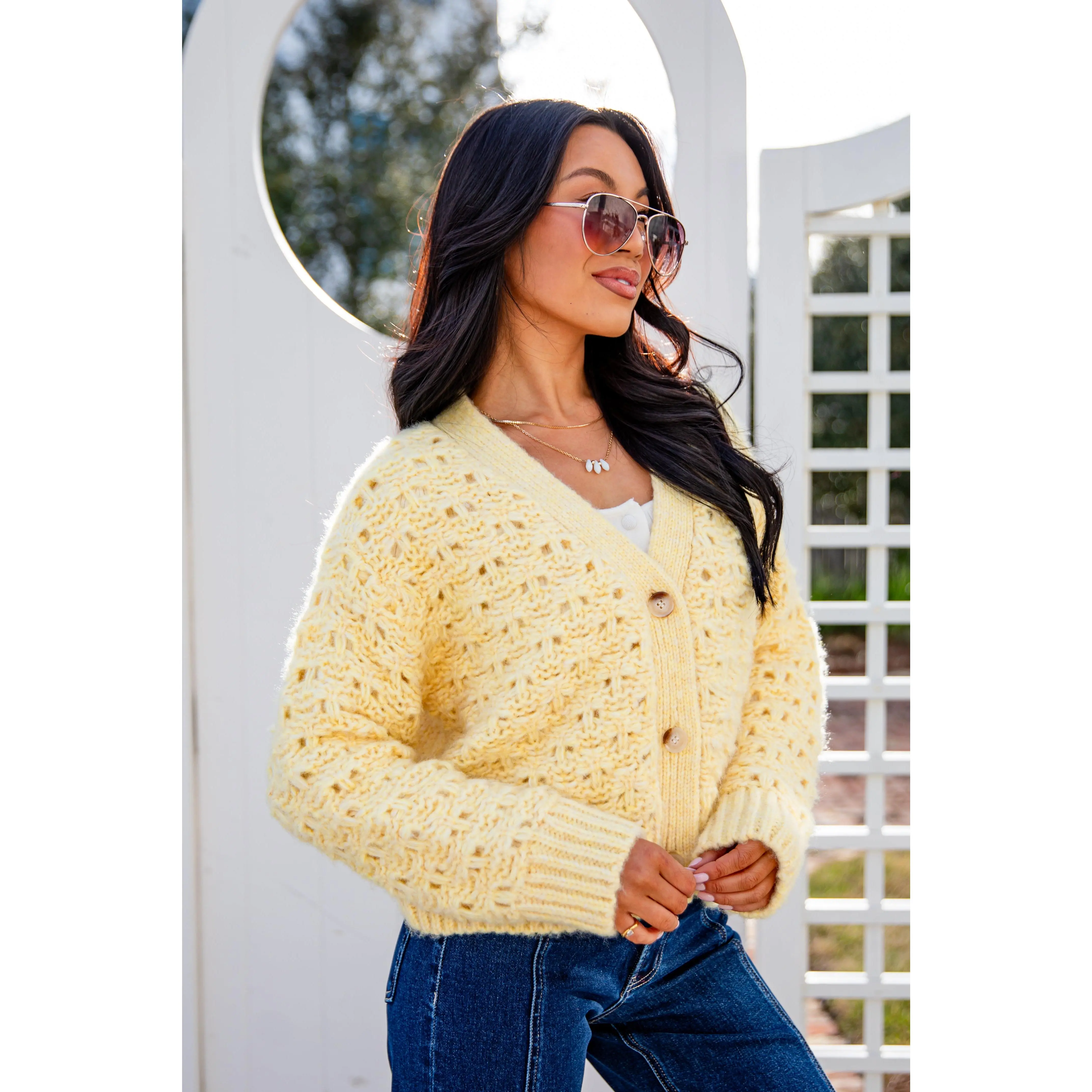 This soft Honeyed Heart Chunky Yellow Knit Cardigan is pure cozy romance. Featuring a textured open-knit body, relaxed fit, and classic button front, it’s the kind of layer you reach for when you want warmth with charm. Easy to throw on over tees, dresses, or knits, this piece brings a soft glow to any Valentine-inspired look.