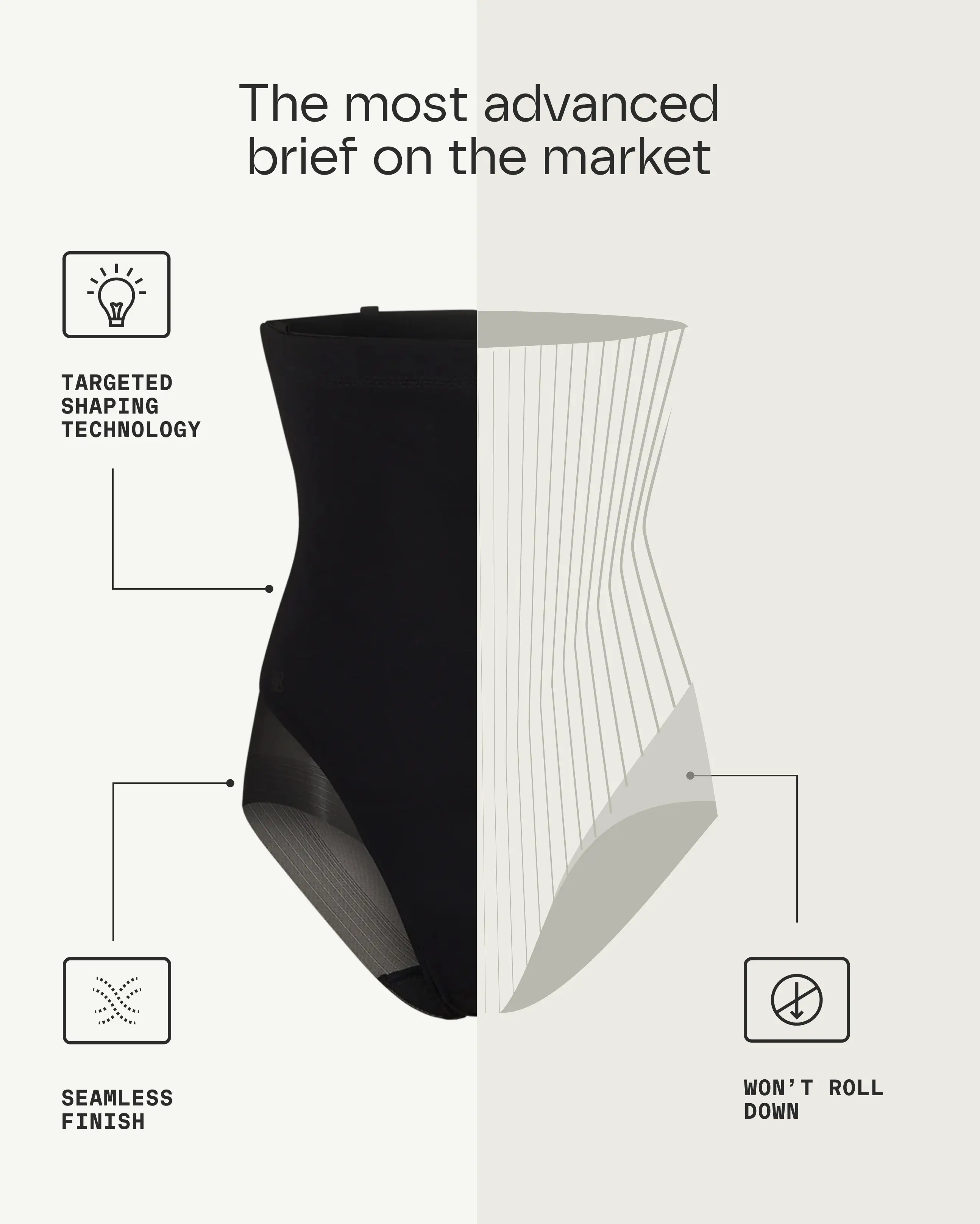 ·Mesh Brief BottomThe mesh brief bottom smooths your booty without creating panty lines. Thanks to its flat, engineered finish, this brief ensures a seamless appearance under any outfit.