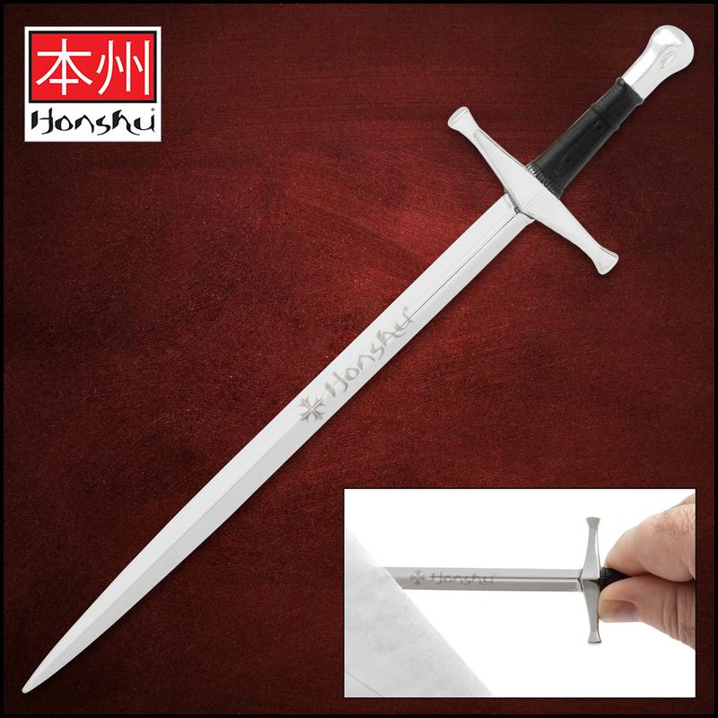 SCALED REPLICA DESIGN: Faithfully replicates the Honshu Broadsword in a compact 7 5/8"" letter opener format.FULLERS AND HONSHU LOGO: Features fullers on both sides of the blade and the Honshu logo, matching the design of the full-size sword.DURABLE ZINC ALLOY: Made from sturdy zinc alloy, ensuring long-lasting performance and style.PERFECT DESK ACCESSORY: Ideal for opening letters or adding a touch of medieval flair to your workspace.COLLECTIBLE APPEAL: A must-have for Honshu fans and collectors of unique sword-inspired items.