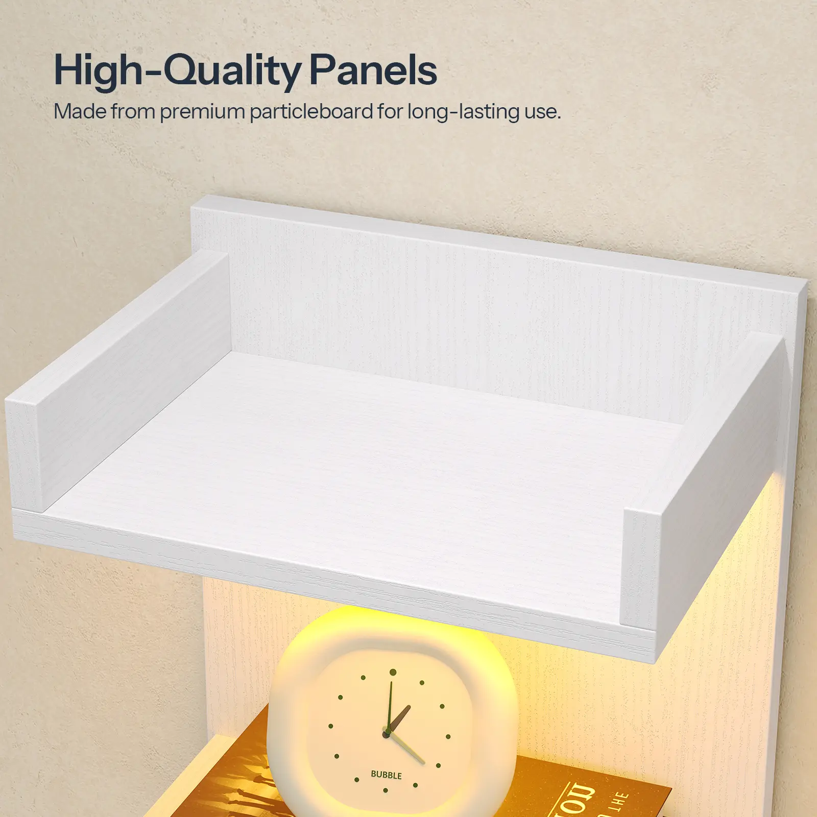 Crafted from high-quality MDF, this wall mounted floating shelf with LED Lights boasts a stable structure.