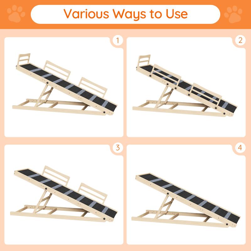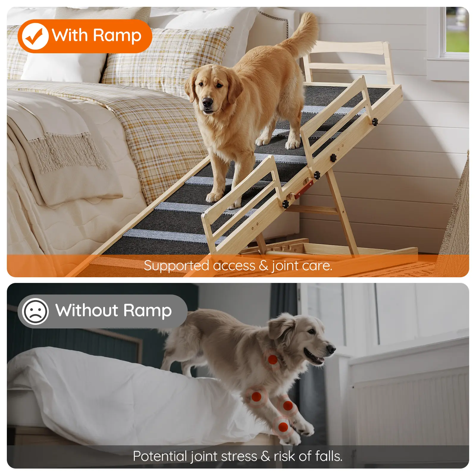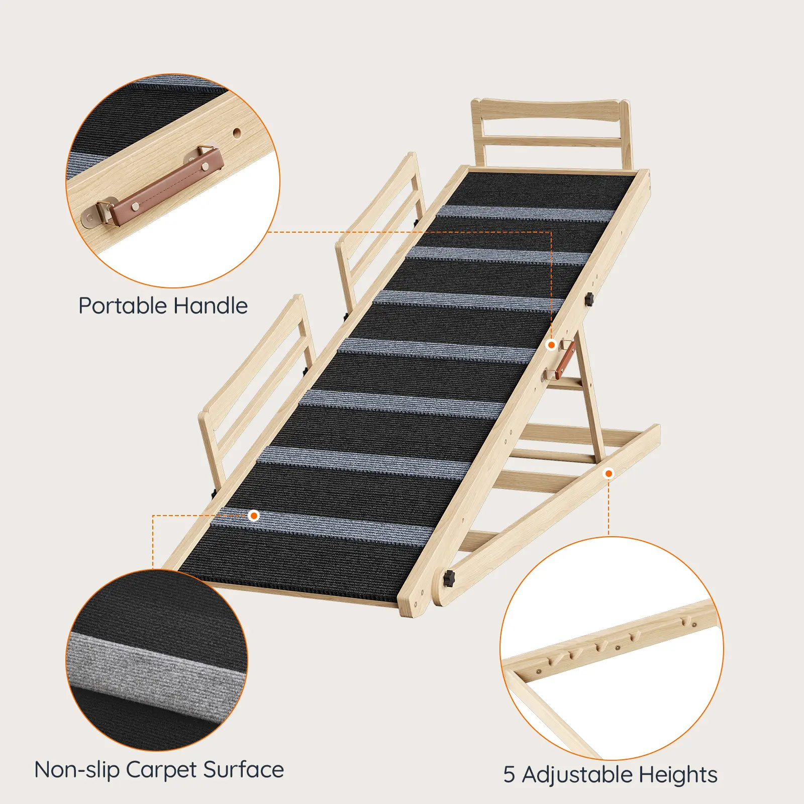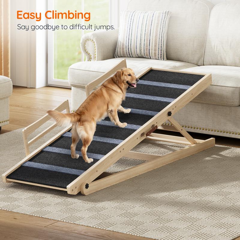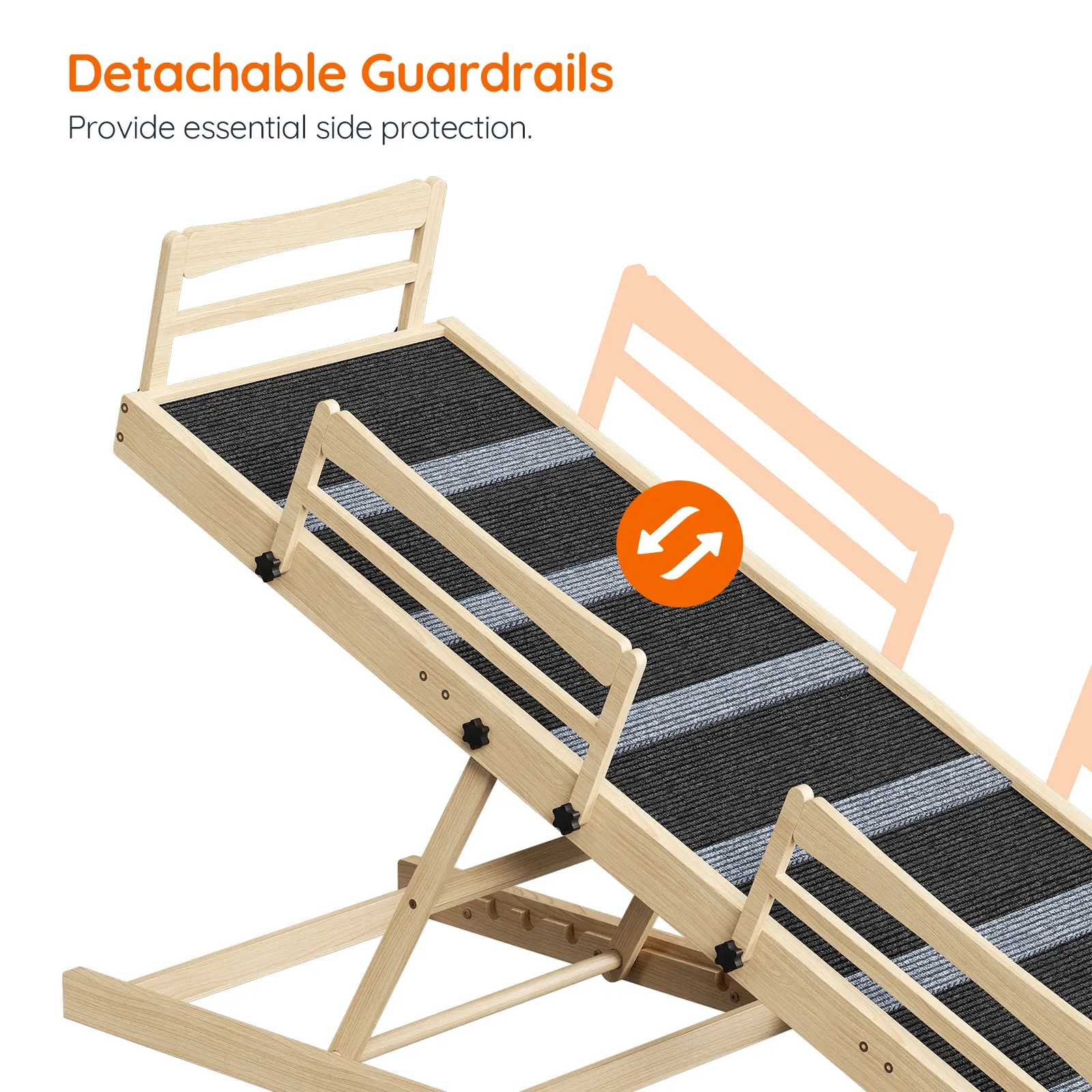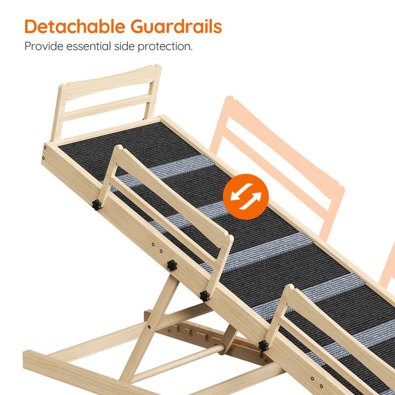 ·Enhanced Safety with Non-Slip Surface & Guardrails: with anti-slip carpet for secure footing and detachable guardrails on either side, this dog ramp is ideal for puppies, senior dogs, or pets with limited mobility, helping reduce the risk of slips and falls