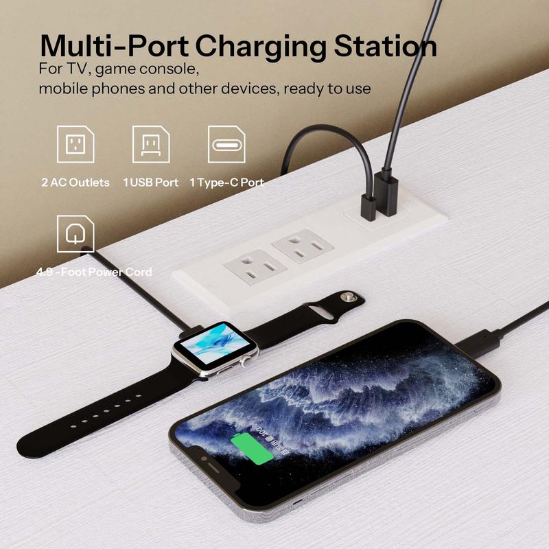·Entertainment Center with Power Station: Equipped with 2 AC outlets, 1 USB port, a Type-C port, and a cable hole, this TV stand offers a spot to charge your living room TV, soundbar, game consoles, etc., maintaining a sleek and tidy entertainment zone