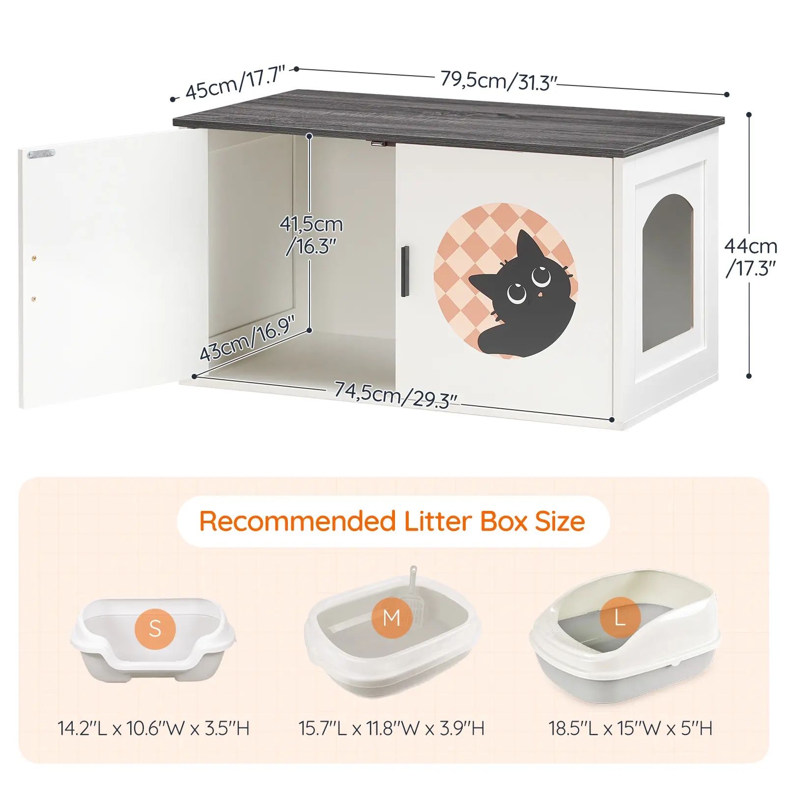 ·Spacious Storage: With dimensions of 31.3"L x 17.7"W x 17.3"H, this cat litter box furniture accommodates most litter boxes easily, offering ample room for your cat to feel relaxed; the tabletop is ideal for displaying pet treats, photo frames, plants, or ornaments