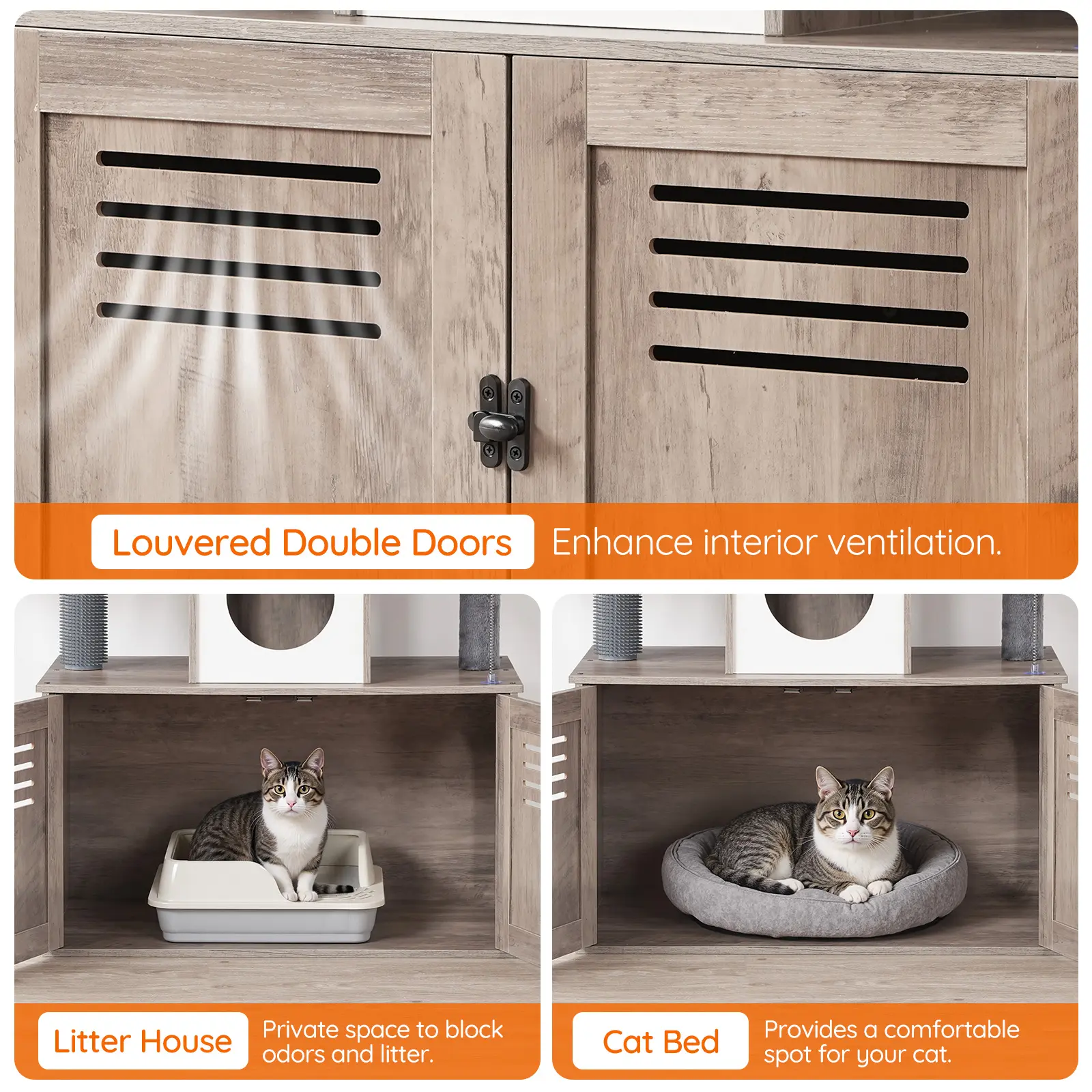 ·Hidden Cat Litter Box Enclosure: This stylish cat villa provides enhanced privacy for your pets. The spacious enclosed cat compartment is designed to hide the litter box (not included), effectively reducing odor while keeping the space tidy and organized