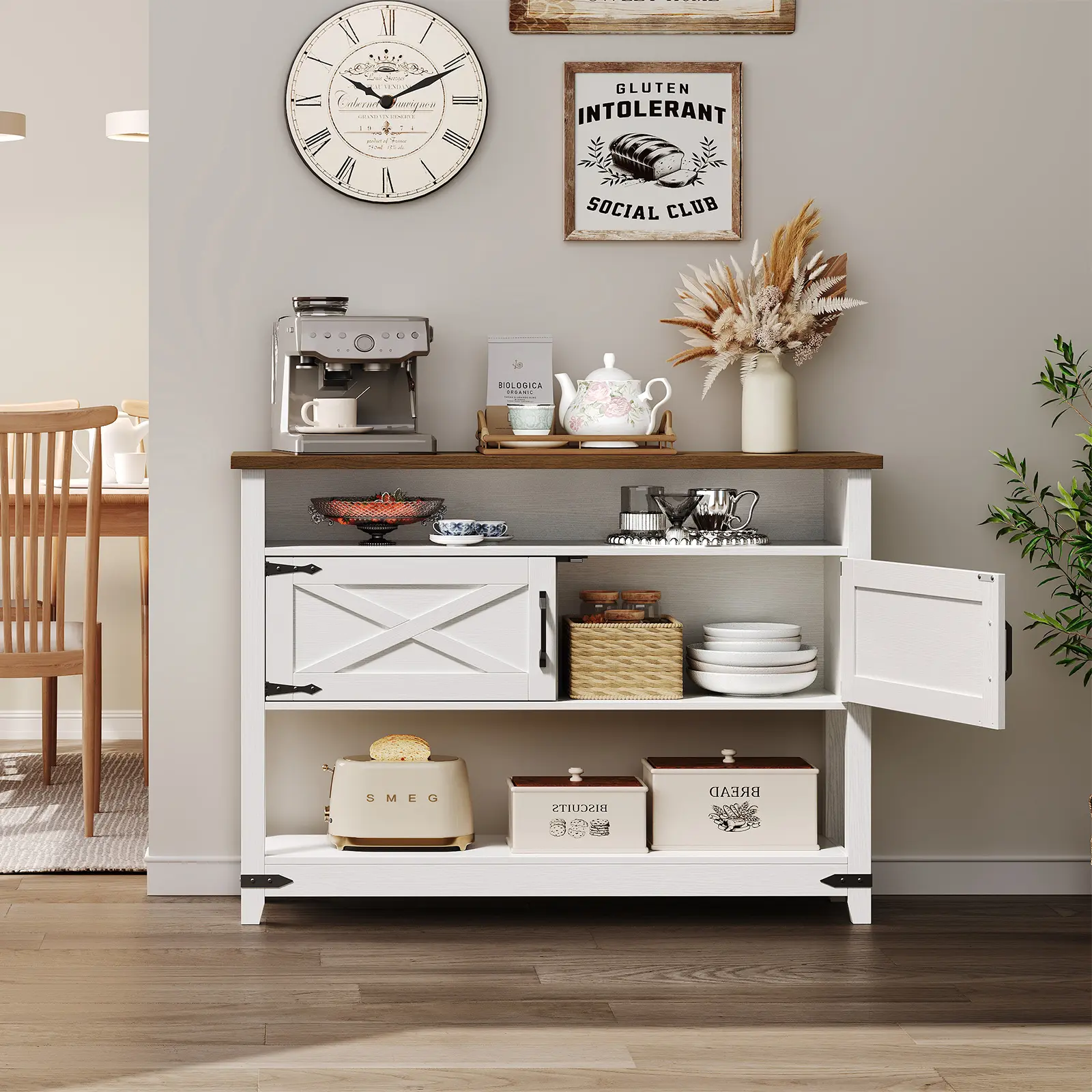 ·Flexible Use, Convenient Adaptability: With a farmhouse look and excellent storage abilities, this cabinet can be an entryway table, sofa table, and console table or act as a buffet or TV stand, providing convenience across various home scenarios