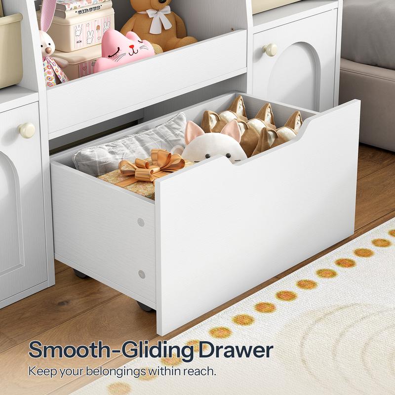 ·Rolling Storage Drawer: Equipped with 4 smooth-gliding casters, the drawer can be effortlessly moved to any desired location. This design inspires children to take an active role in organizing their belongings, while the spacious compartments help them develop essential tidying habits